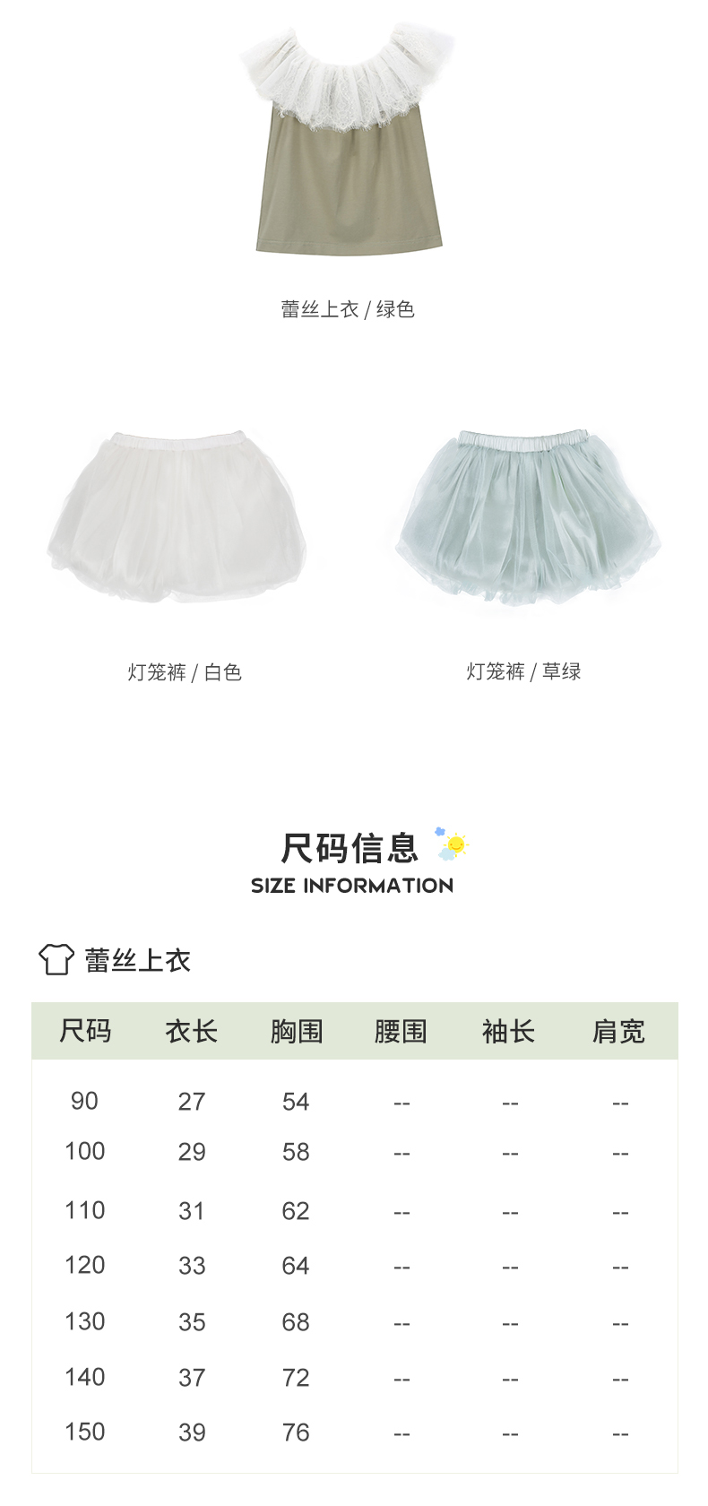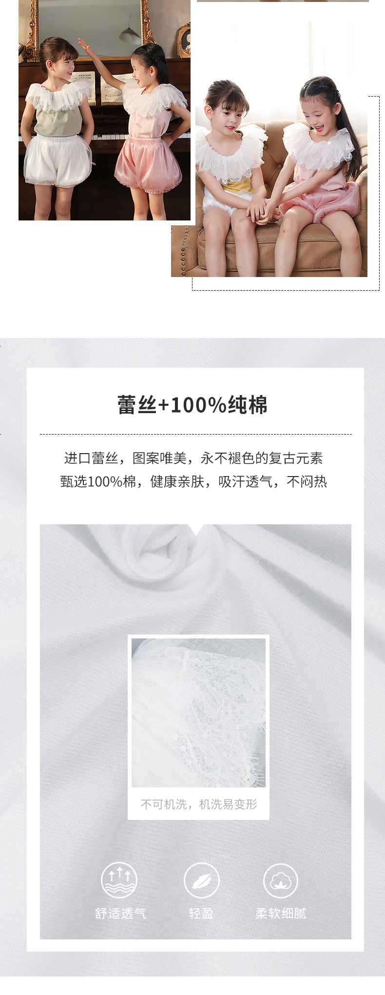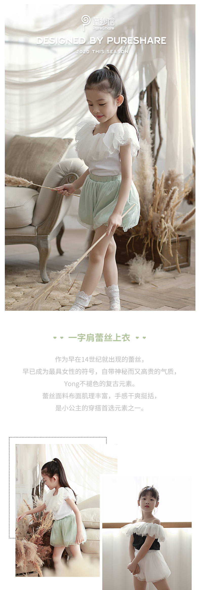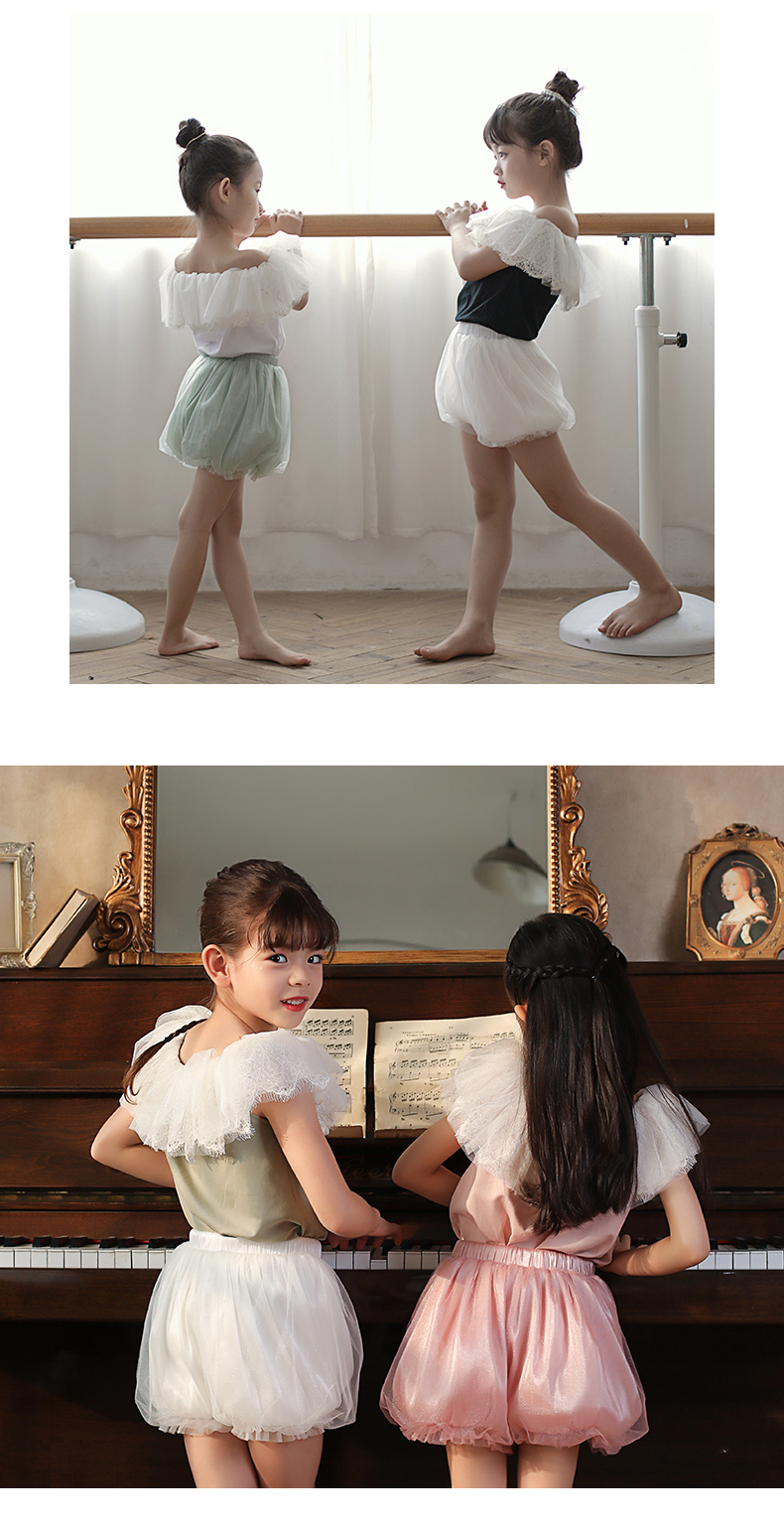 非质量问题不退换哦~pureshare 女童T恤一字领蕾丝上衣灯笼裤可爱气质