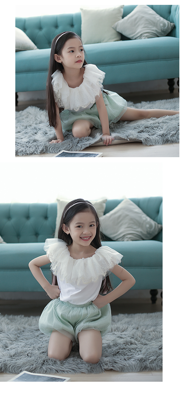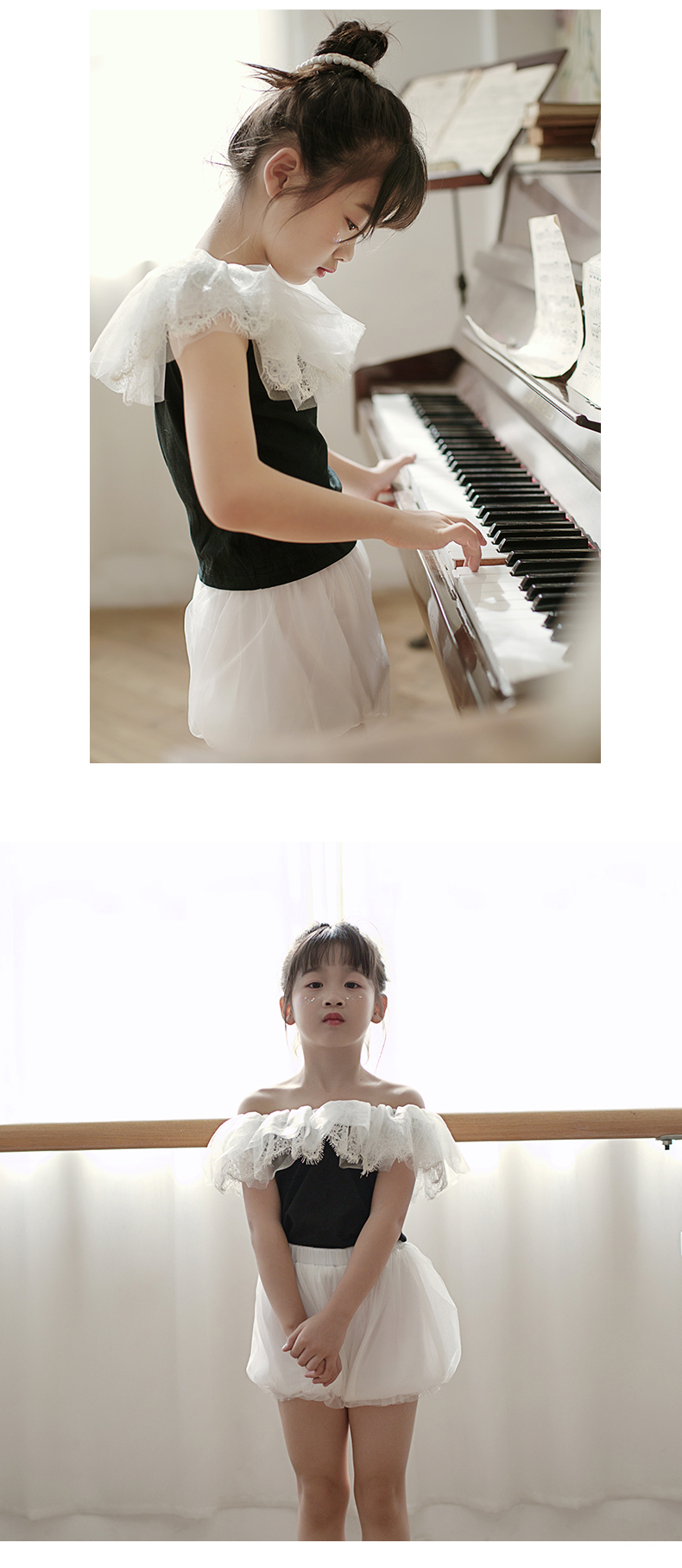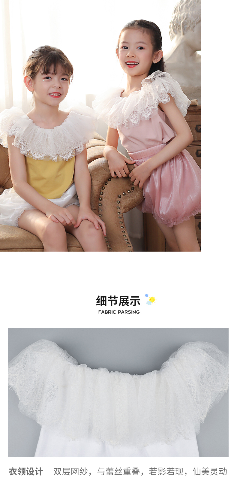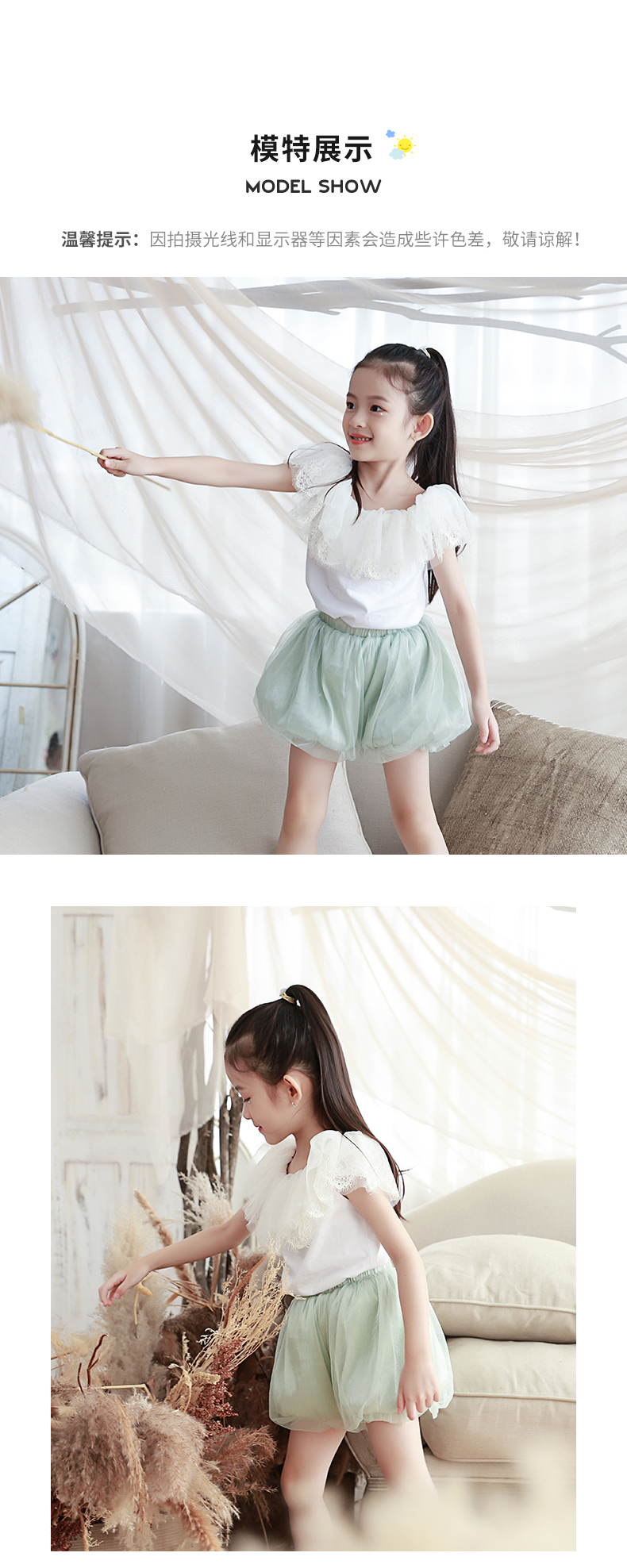 非质量问题不退换哦~pureshare 女童T恤一字领蕾丝上衣灯笼裤可爱气质