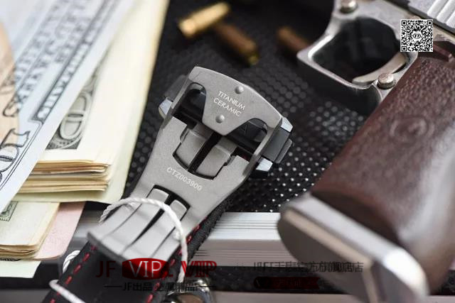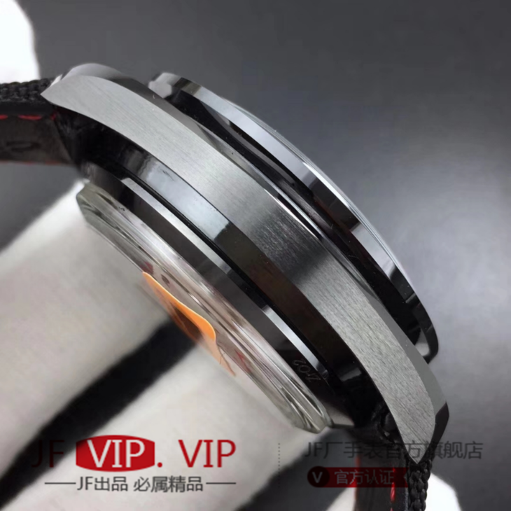 【技术难点】44.25毫米磨沙抛光陶瓷表壳厚度适中而且更具立体感棱角分明拉沙工艺的表壳搭配抛光打磨黑色陶瓷表圈,不同处理工艺的搭配更显醒目,陶瓷表圈上带有超霸系列标志的测速刻度。