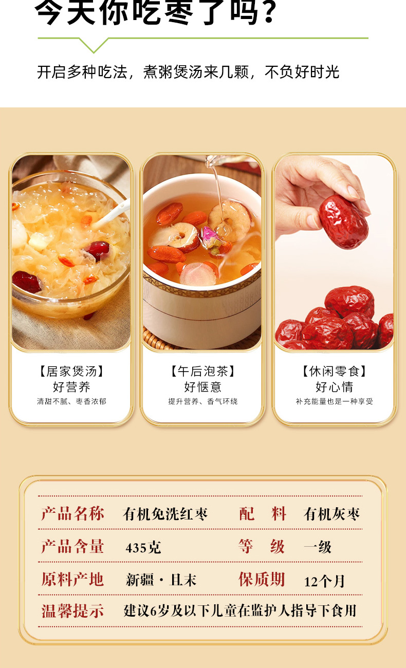 【凤品优选】有机免洗红枣 新疆特产灰枣 泡茶煲汤大枣 零食枣子