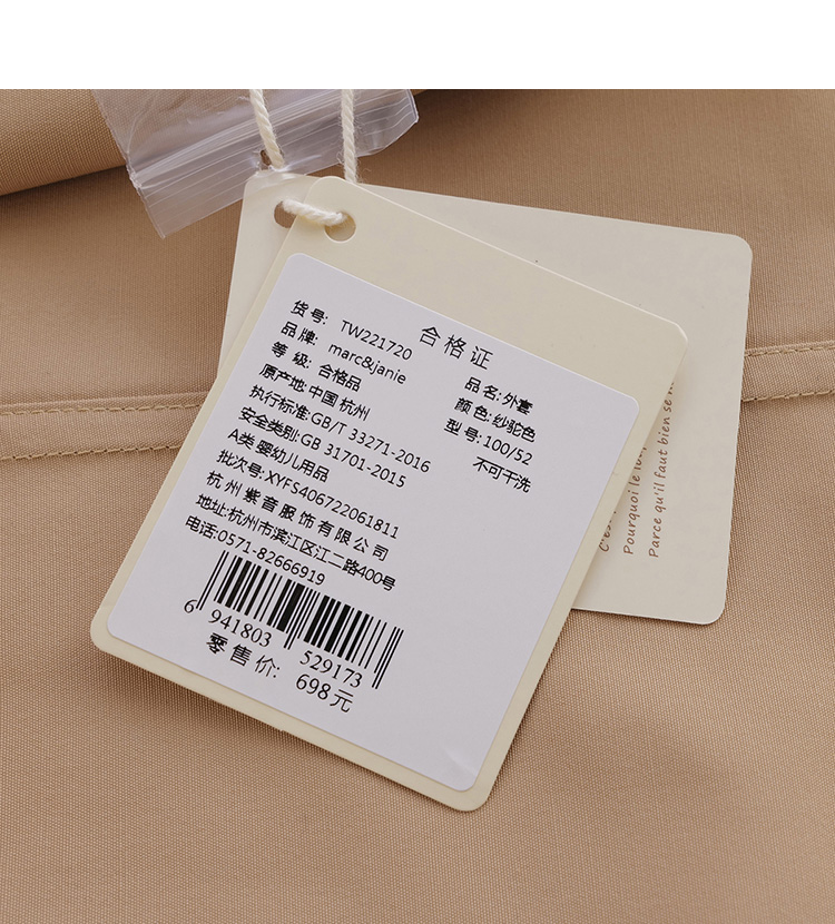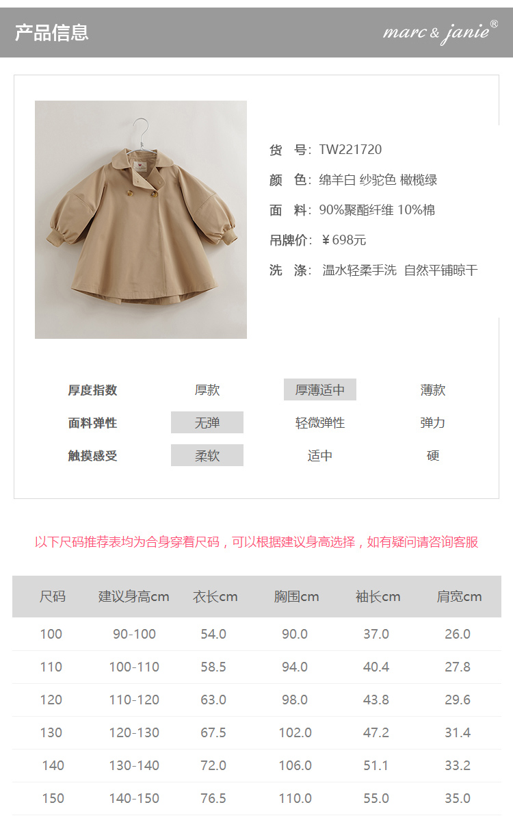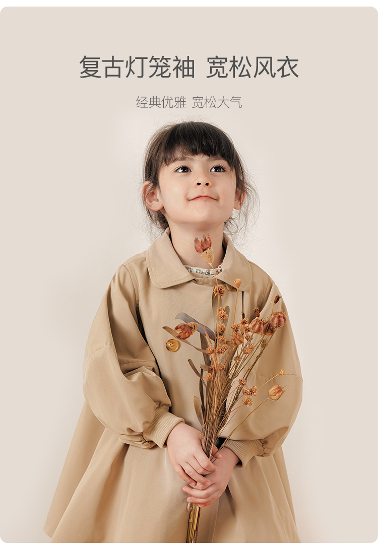 【马克珍妮 芦芙】春装 女童大廓型A版风衣 儿童外套221720
