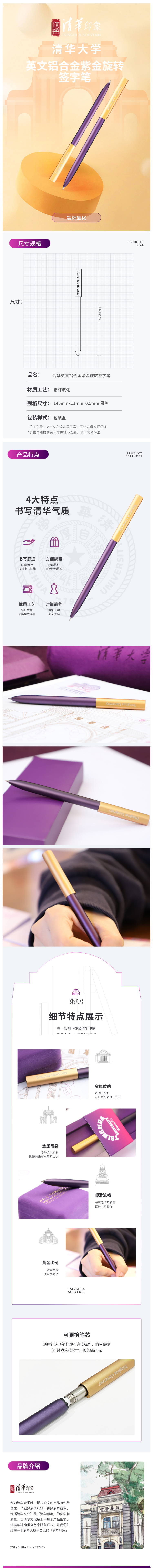 清华文创简约软握减压0.5mm塑料按压式签字笔