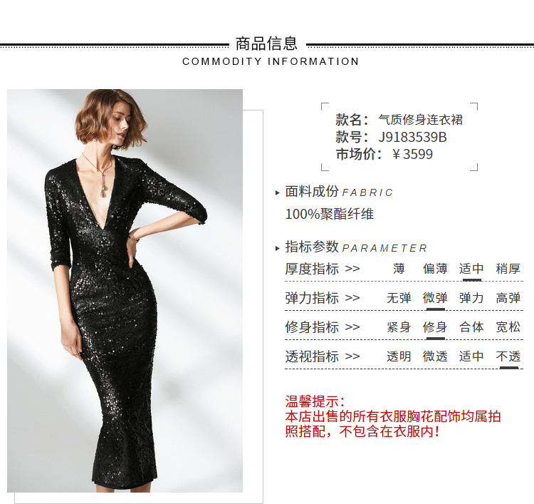 礼服 连衣裙-J9183539B颈袖添香2019春季装新款时尚OL职业装气质亮片装饰连衣裙女中长款J9183539B