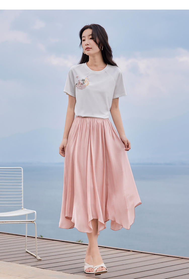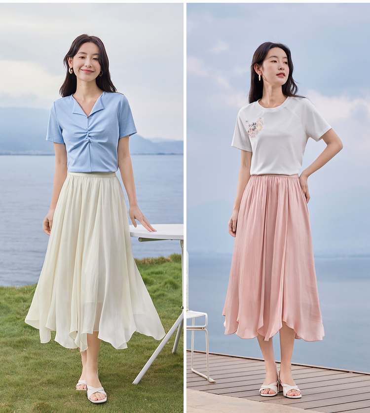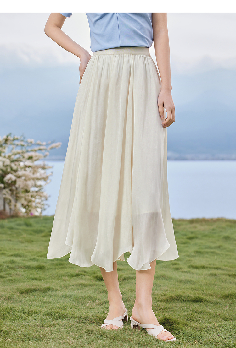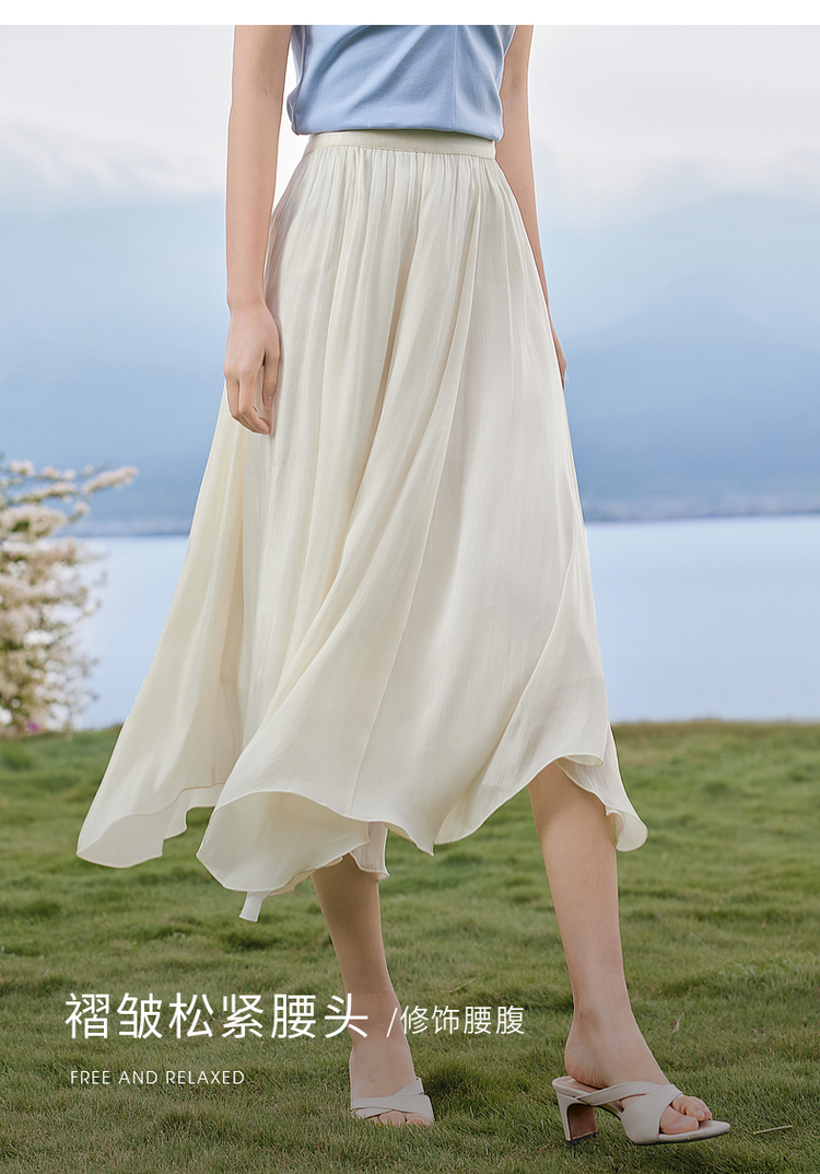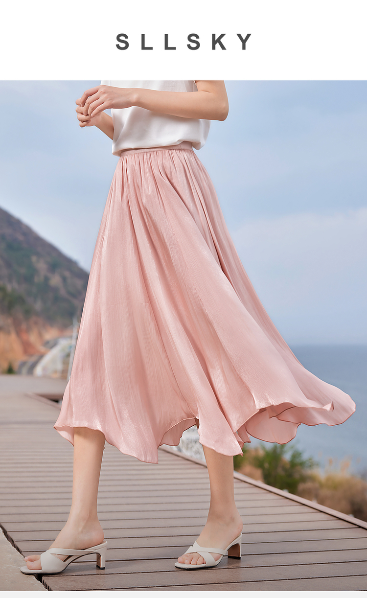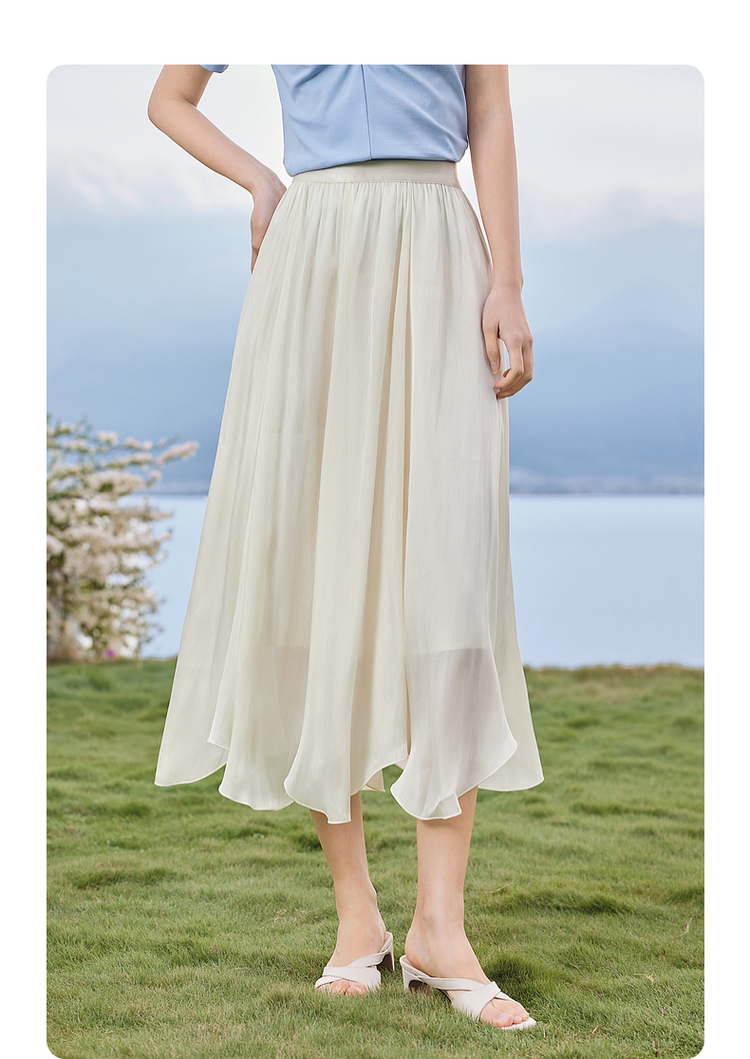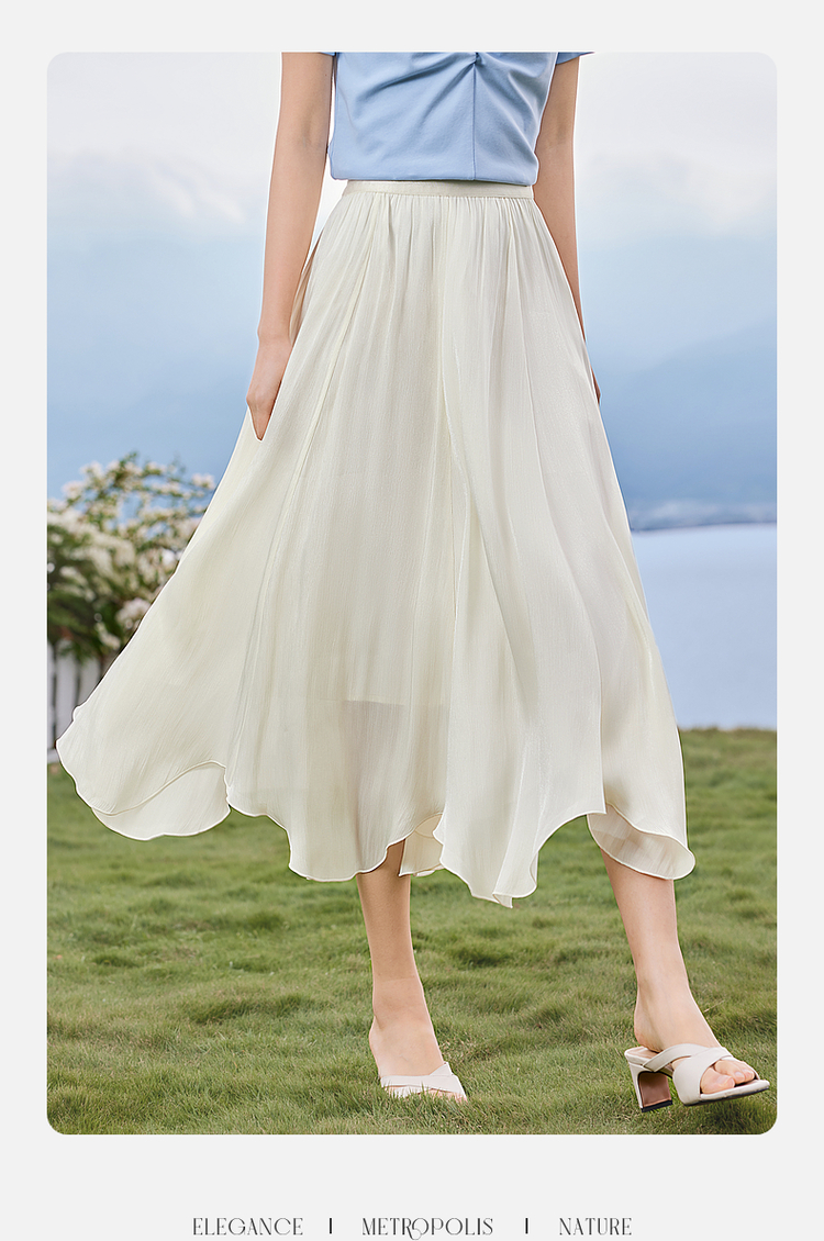 【专属特价】熙世界超仙女森系鎏光纱裙半身裙2025夏款遮胯垂感飘逸a字裙子