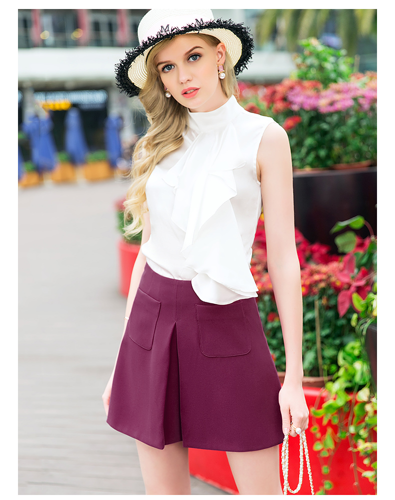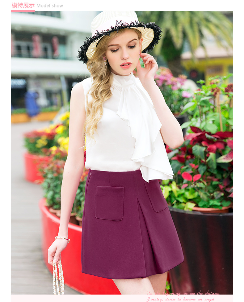 欧芮儿2016女士夏装新款紫色a字伞摆前对褶宽松百搭高腰半身裙夏
