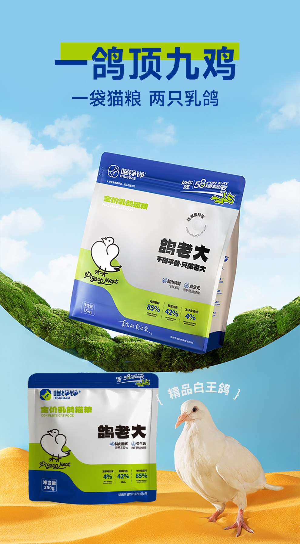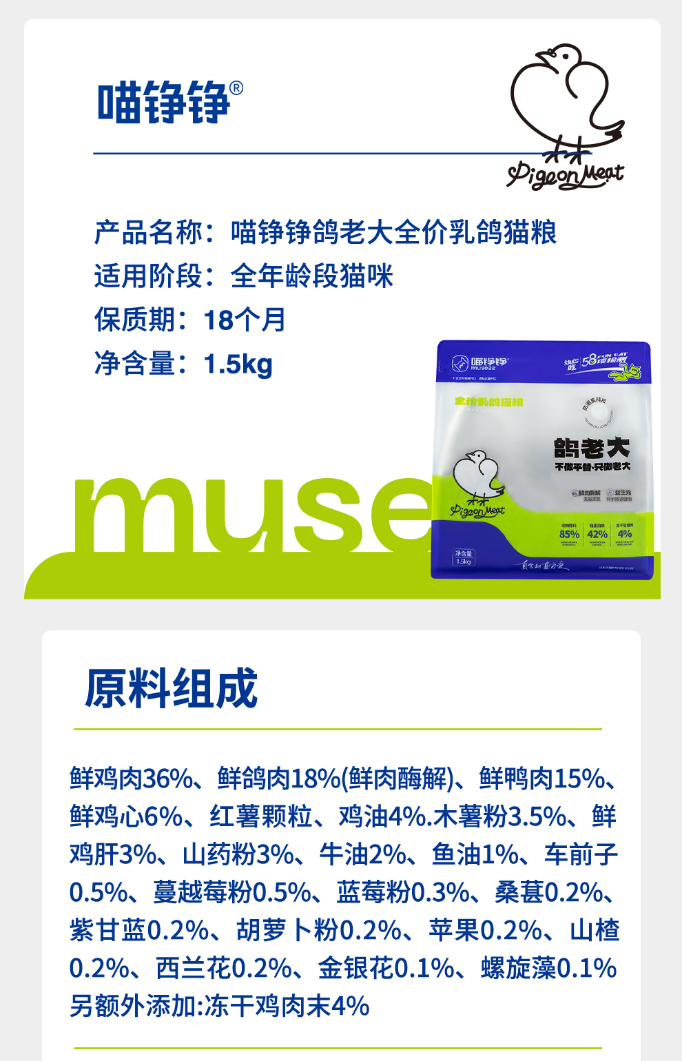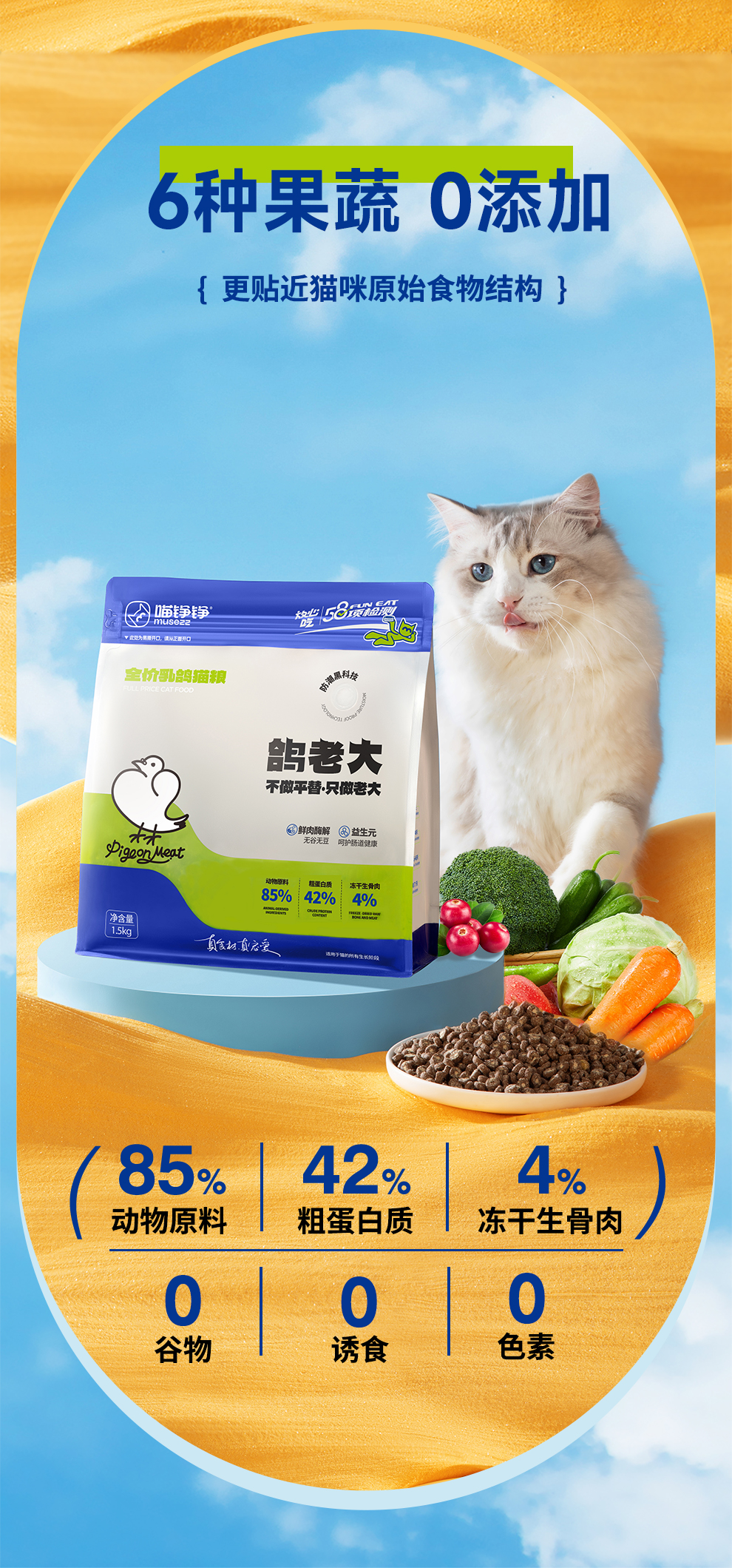 喵铮铮鸽老大猫粮 3斤/包 猫咪夹心生骨肉低敏营养猫粮