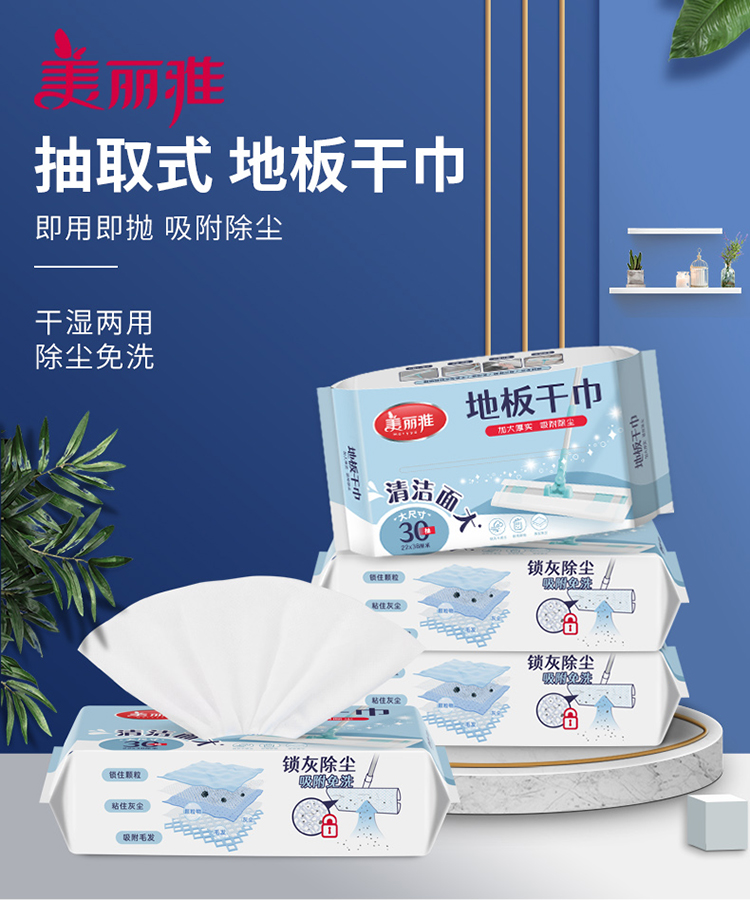 【一次性抹布干巾】美丽雅一次性大号拖把替换干巾地板静电除尘纸抑菌懒人抹布 38*22cm*30张