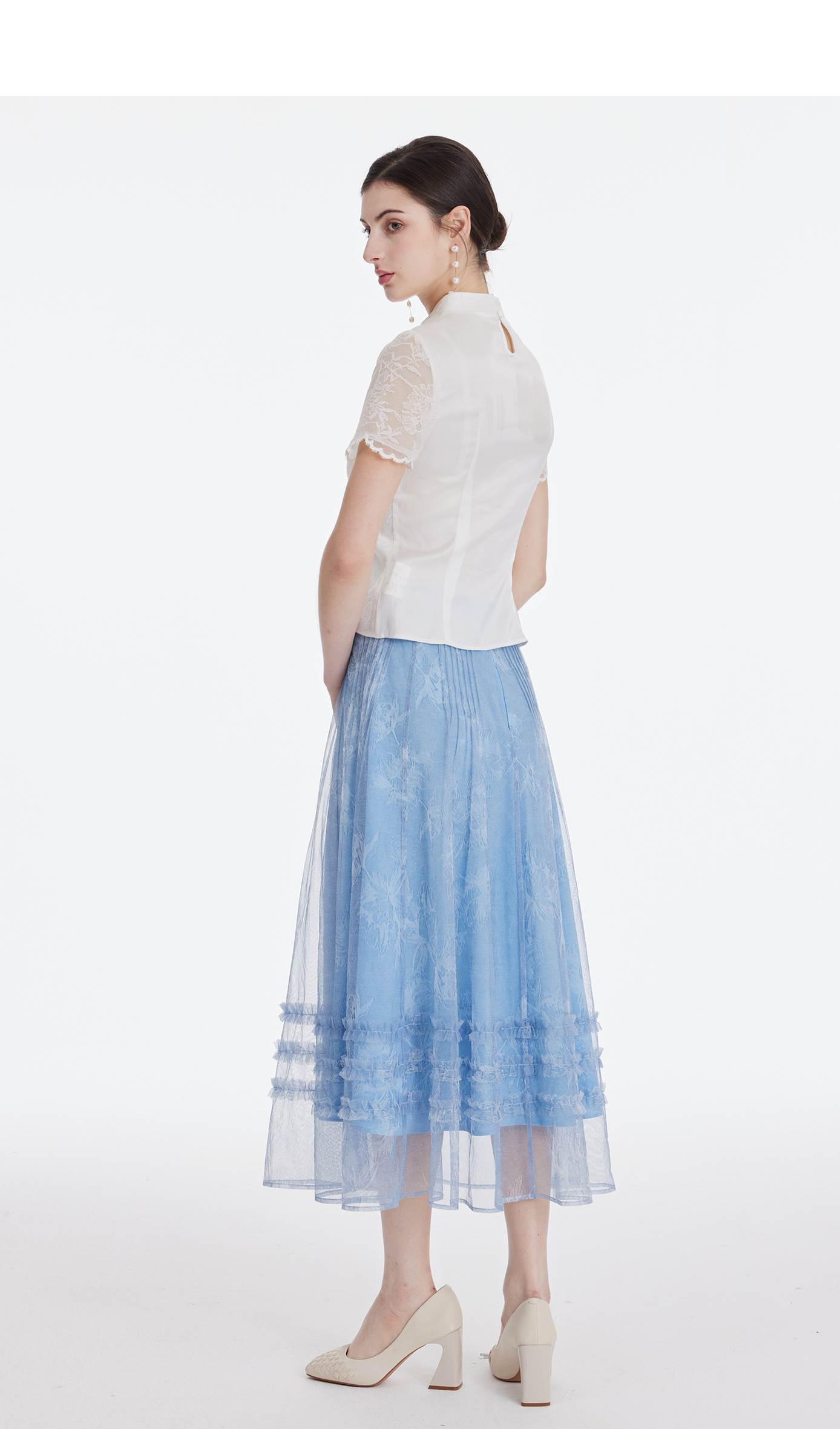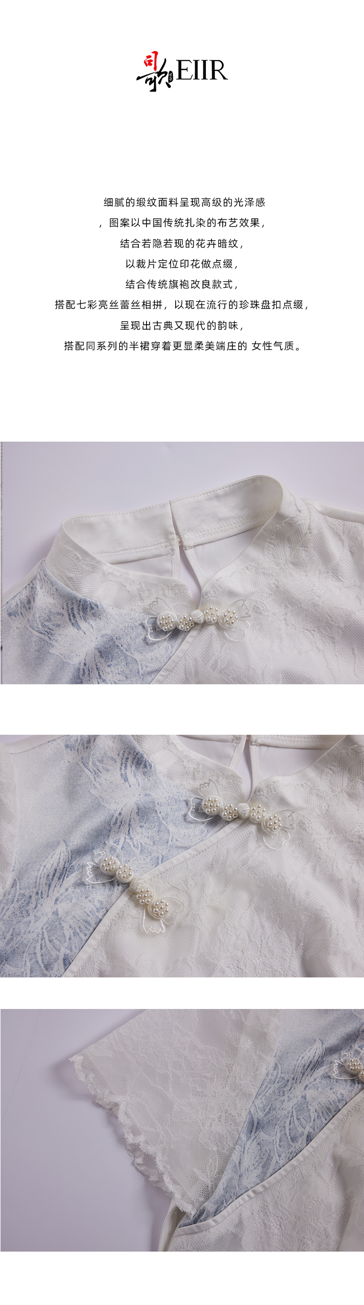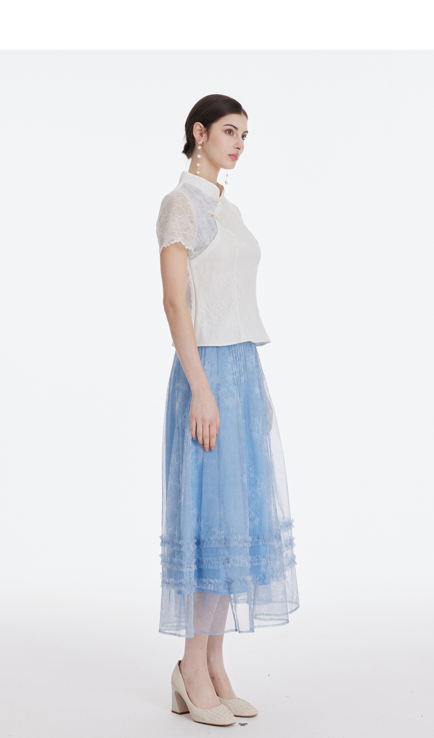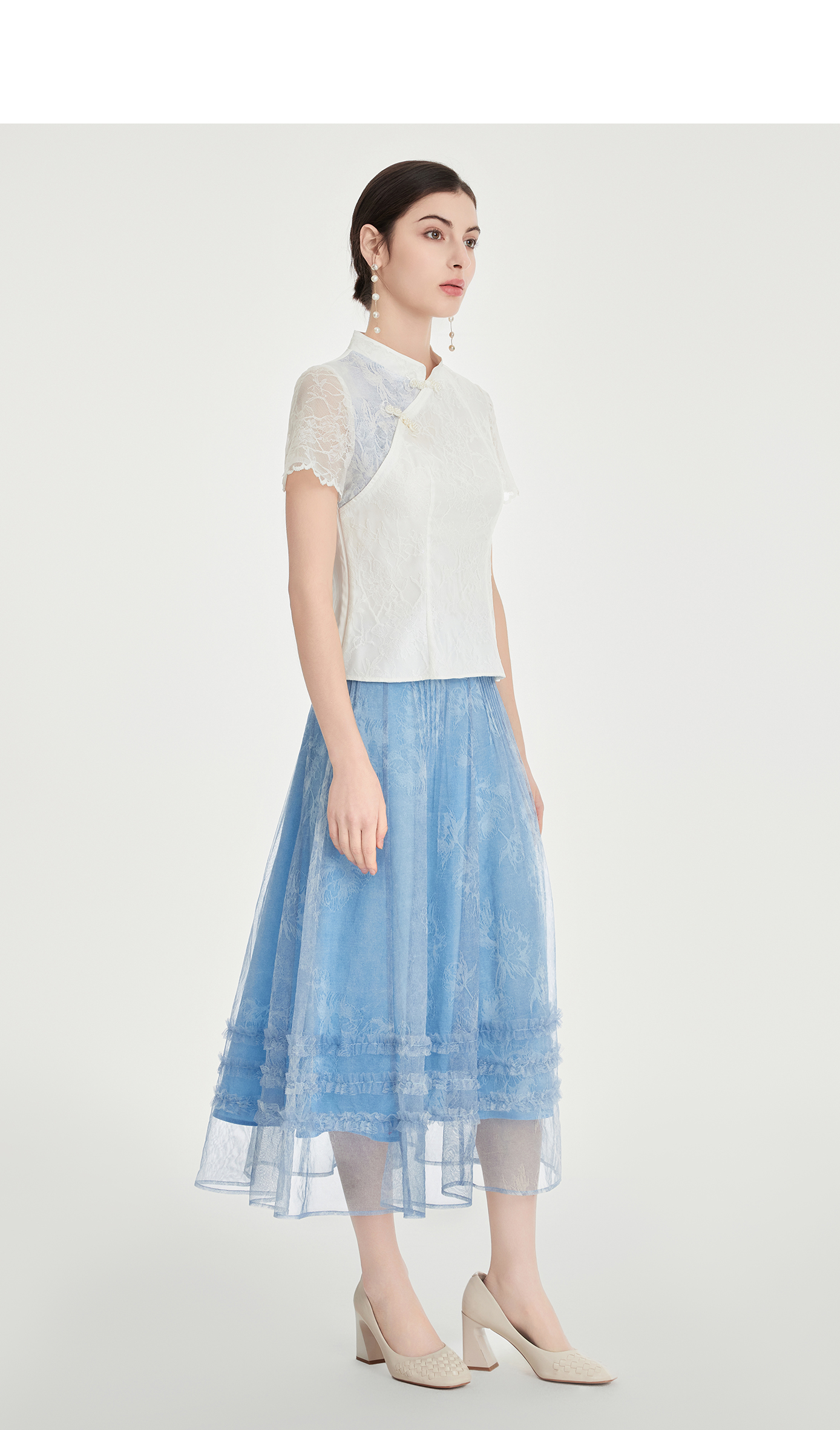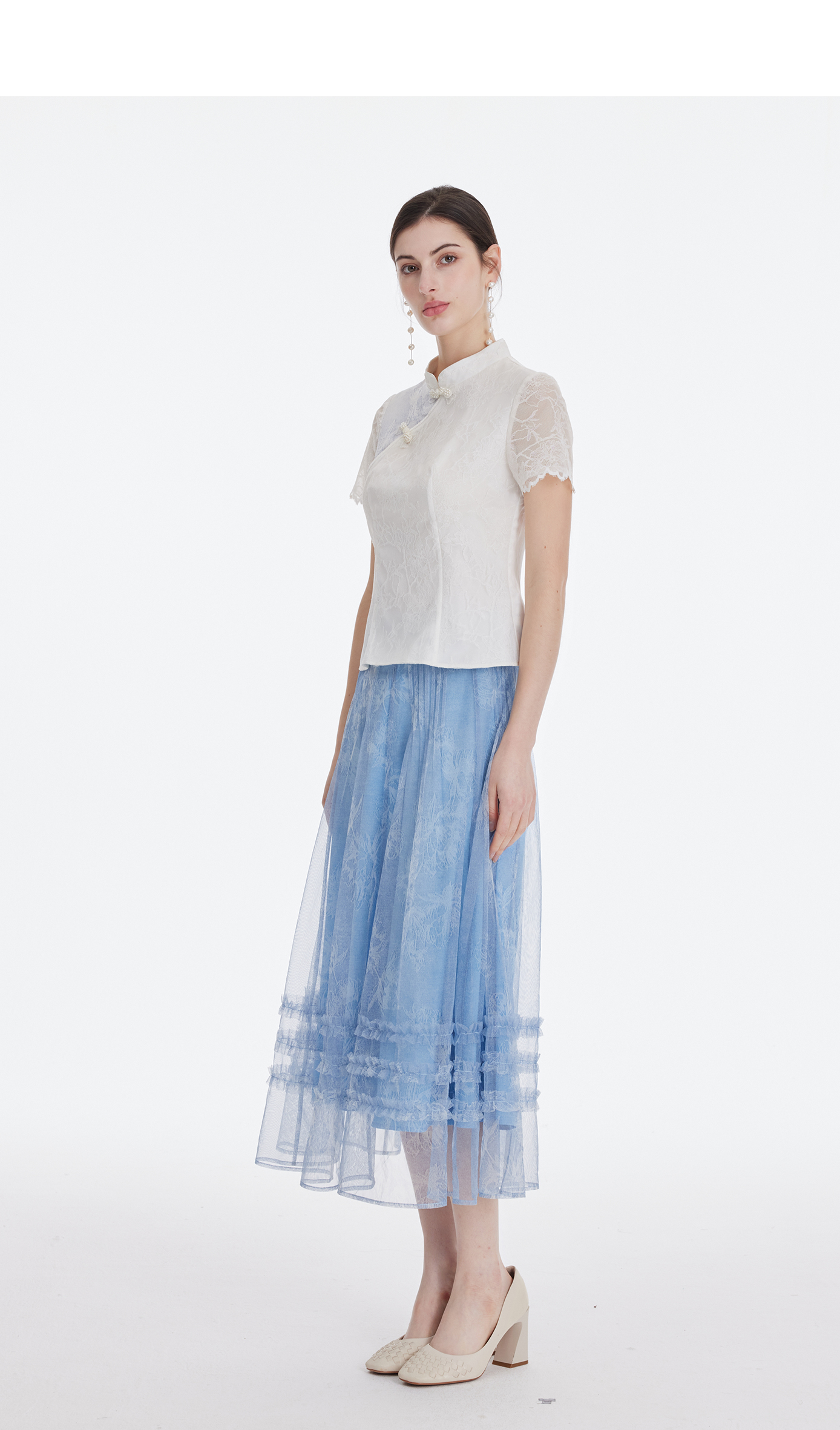 司歌国风立领上衣短袖新中式蕾丝T891168X