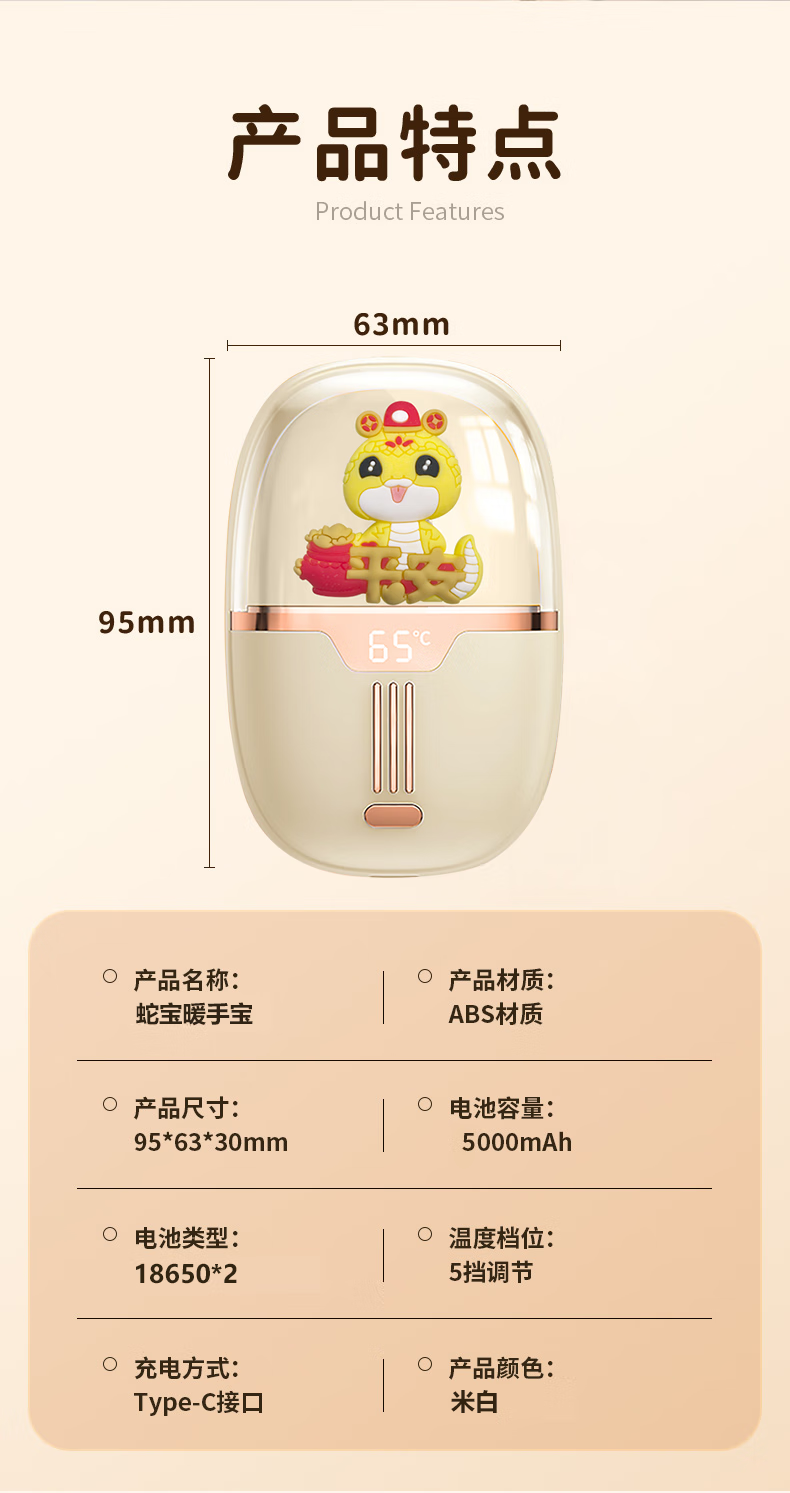 十足酷蛇宝暖手宝移动电源SZK-K50