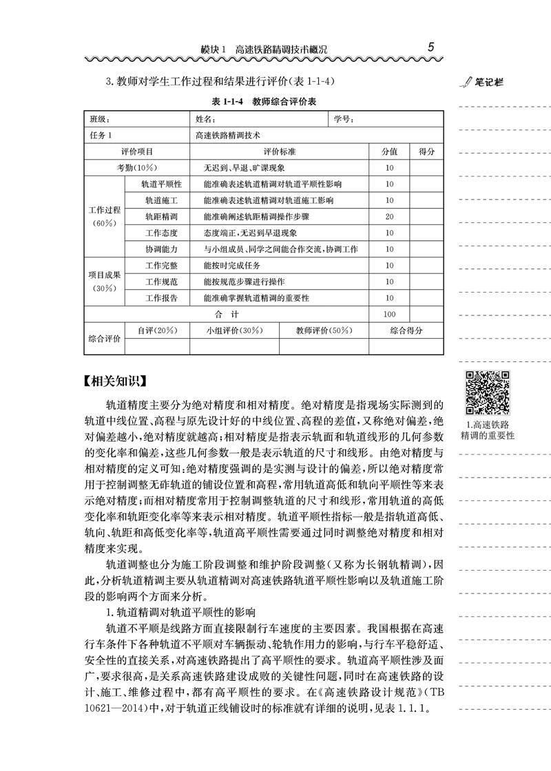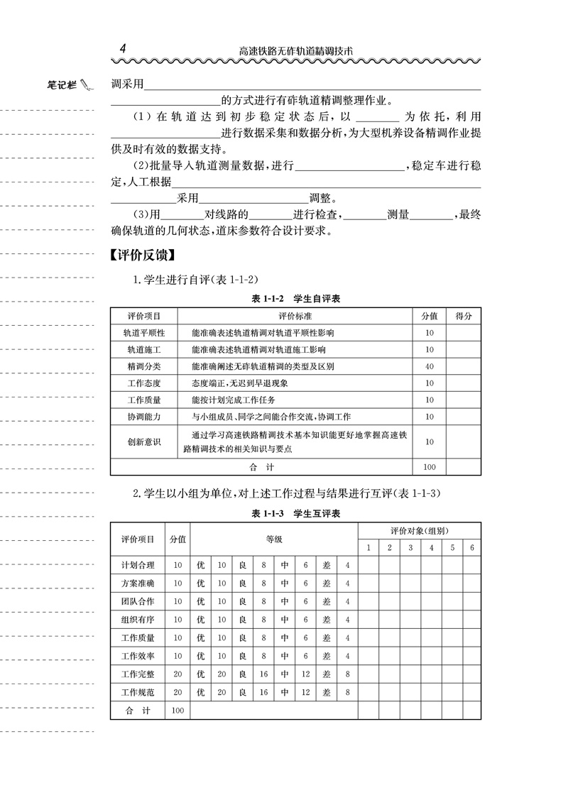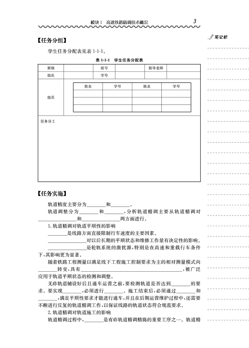 本书主要介绍了高速铁路无砟轨道精调技术概况、精密测量控制网布设及测量,围绕国内目前使用的主要无砟轨道结构形式,对双块式无砟轨道精调技术和板式无砟轨道精调技术的内容进行了阐述,书中也融入轨道辅助结构——道岔精调技术和长钢轨精调技术相关内容。本书采用新形态活页式,将教学内容、操作手册和学生评价融为一体,并配有在线开放课程、3D动画和教学视频等丰富的教学资源。