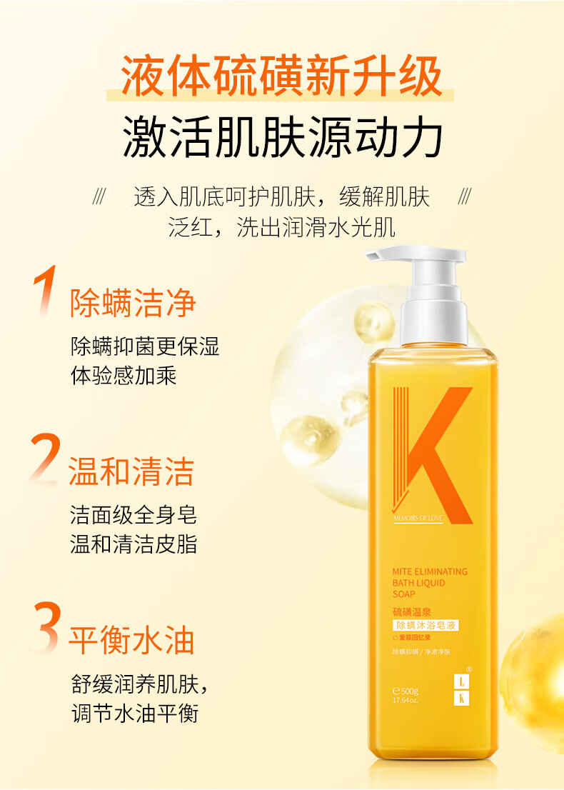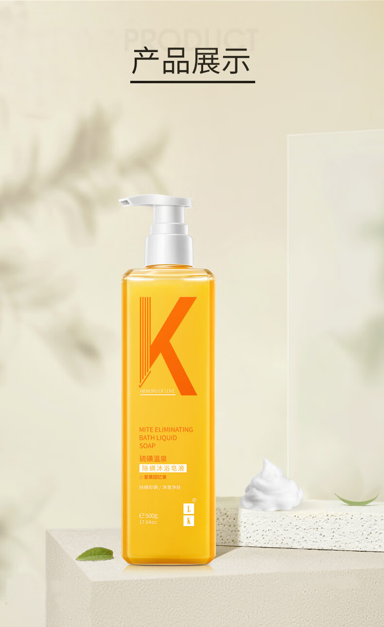 【分仓直发包邮】LK硫磺温泉除螨沐浴皂液500g
