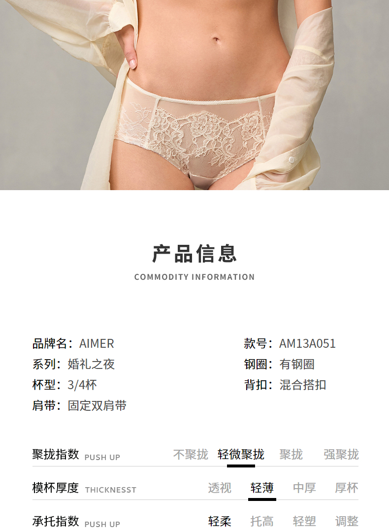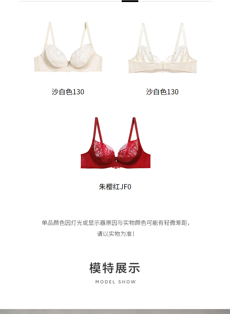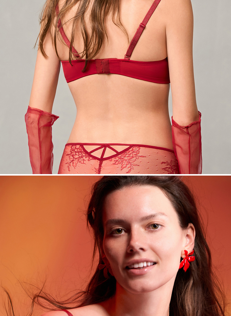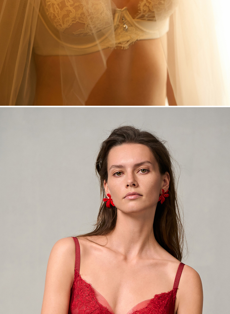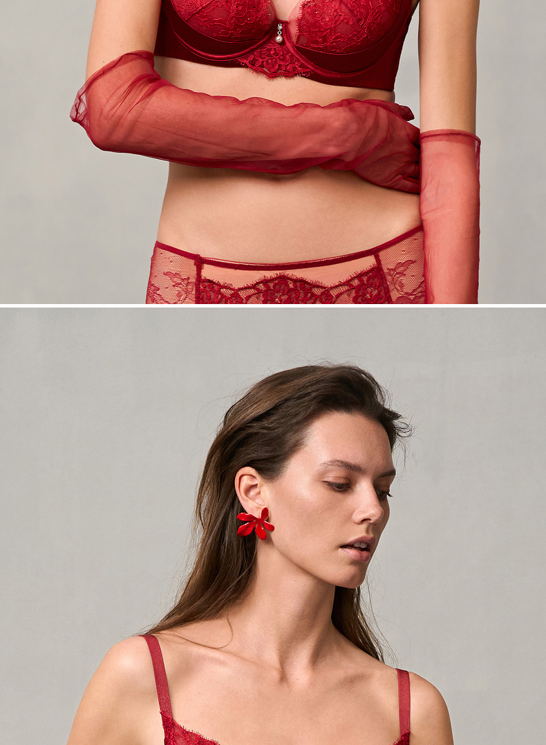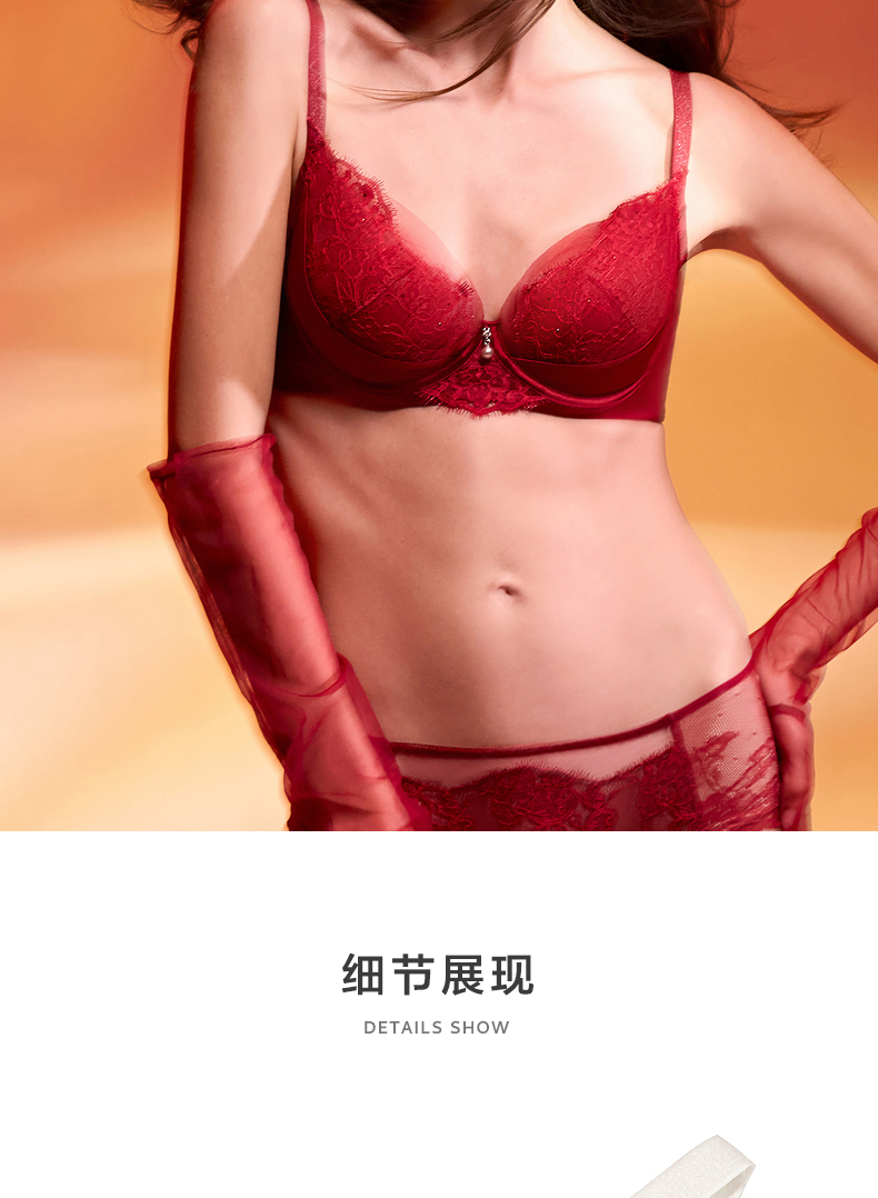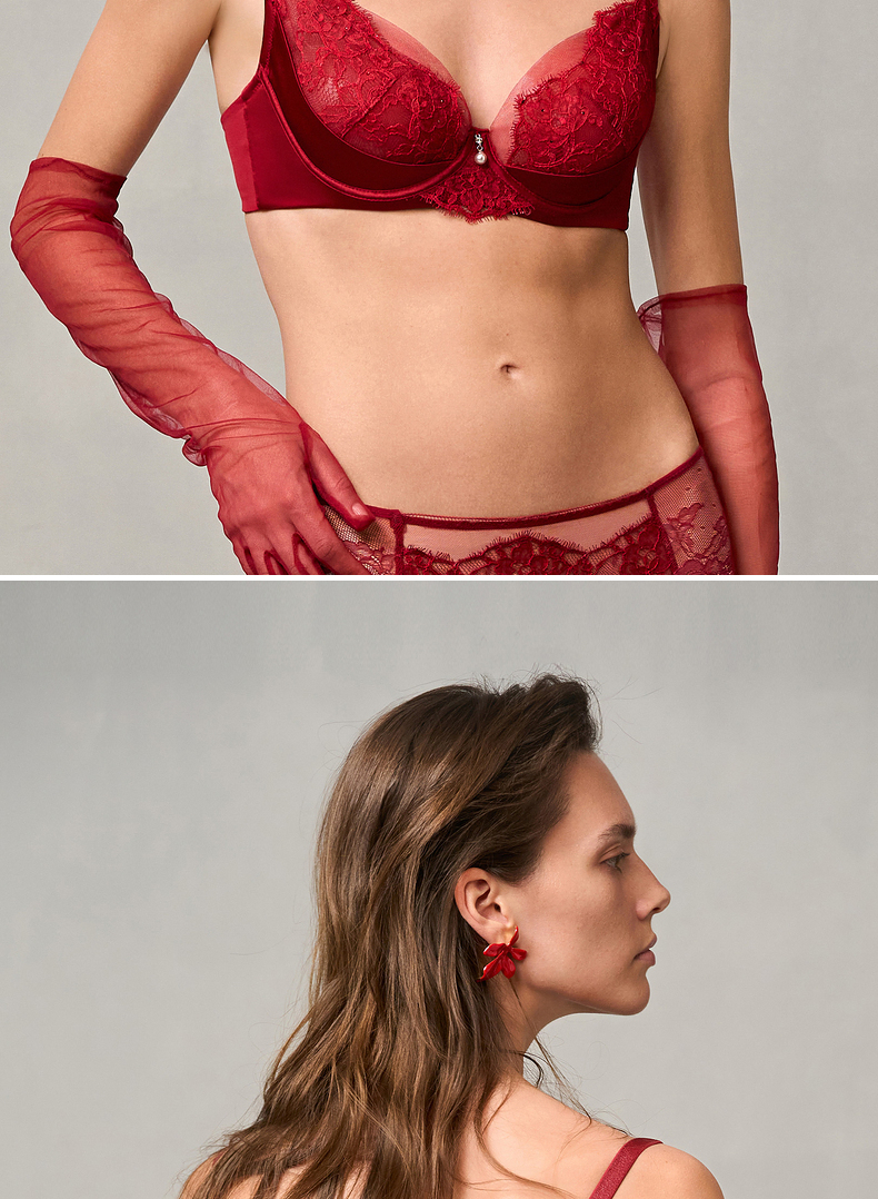 爱慕婚礼之夜内衣女3/4薄杯性感蕾丝红色大胸显小文胸