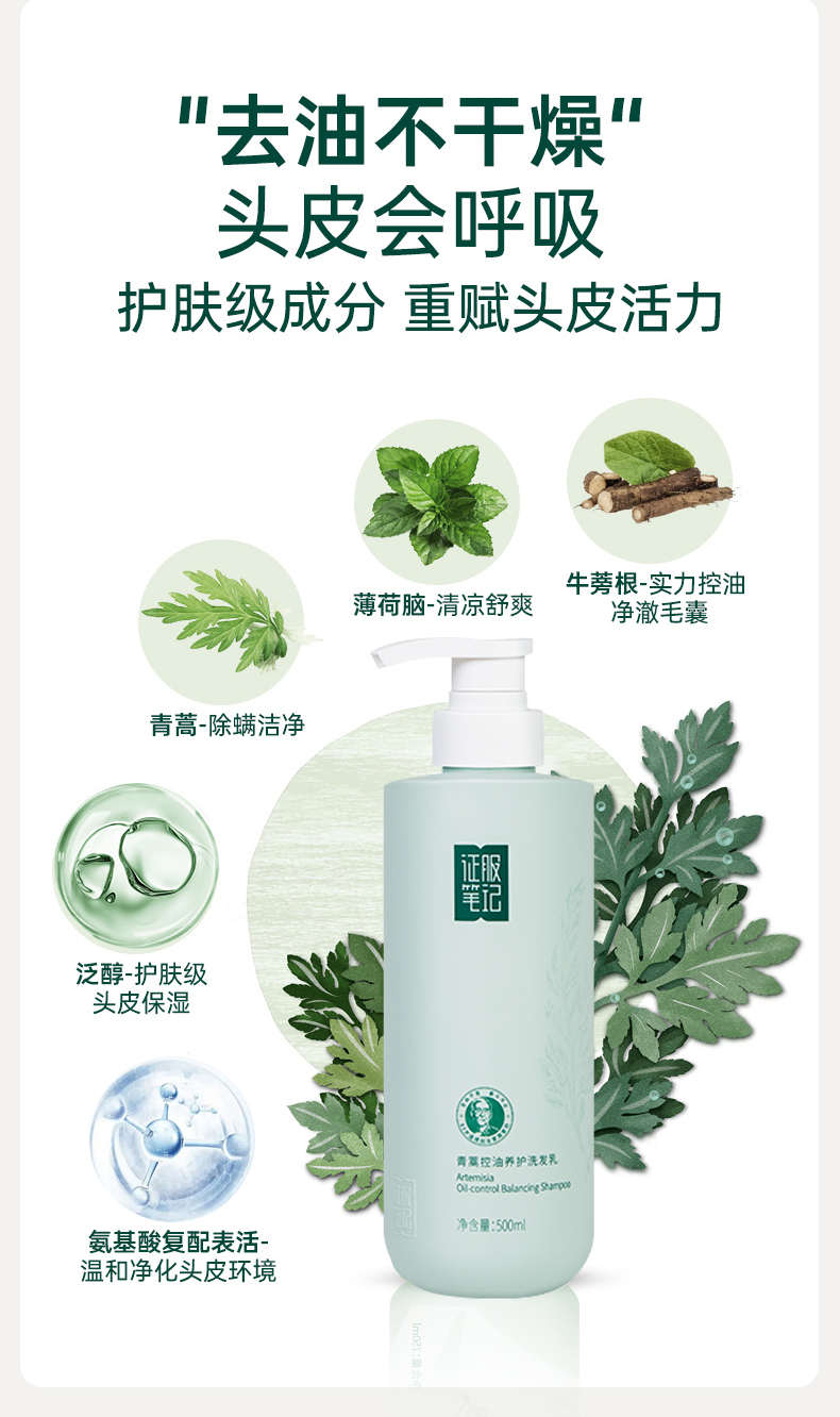 征服笔记青蒿控油养护洗发乳/1瓶(500ml)