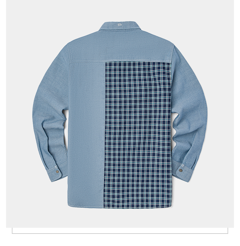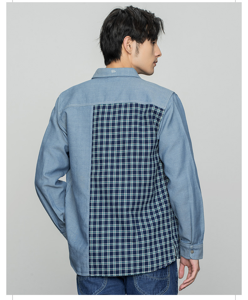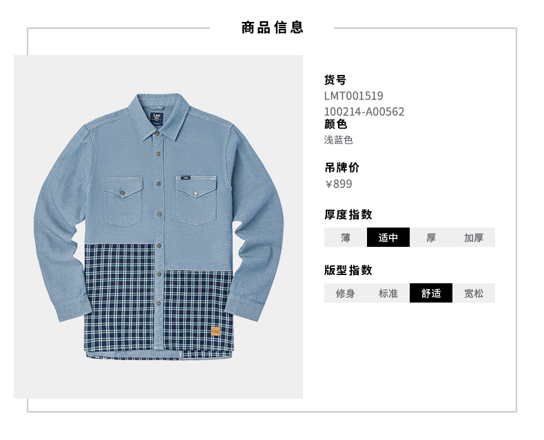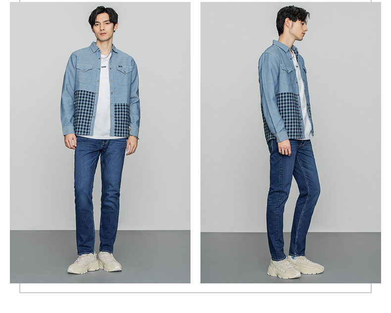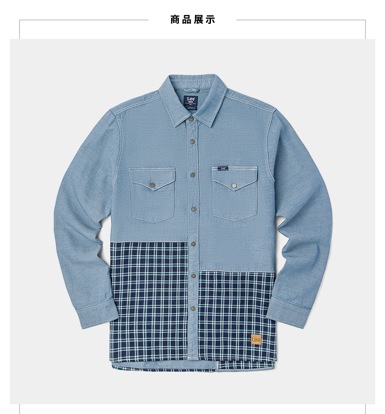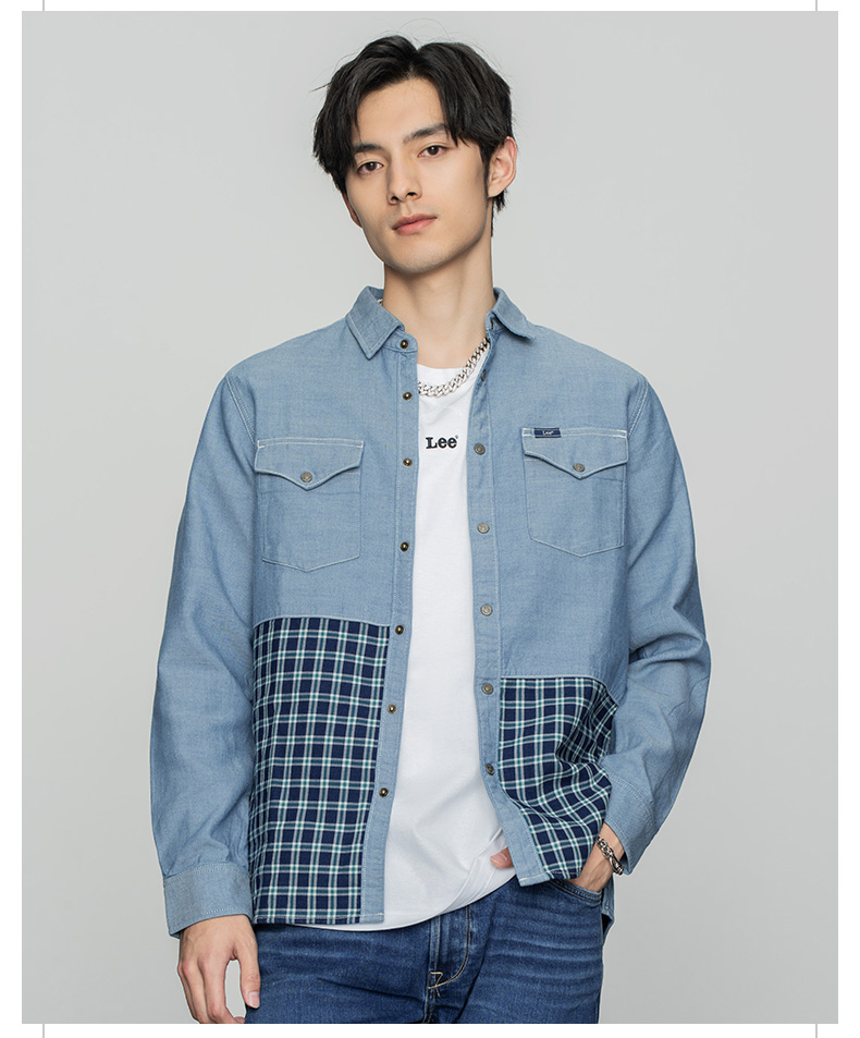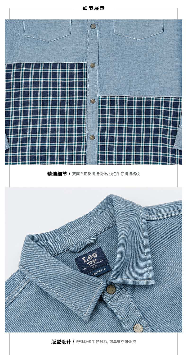 Lee商场同款22春季新品101+舒适浅蓝拼接男衬衫LMT001519100-562