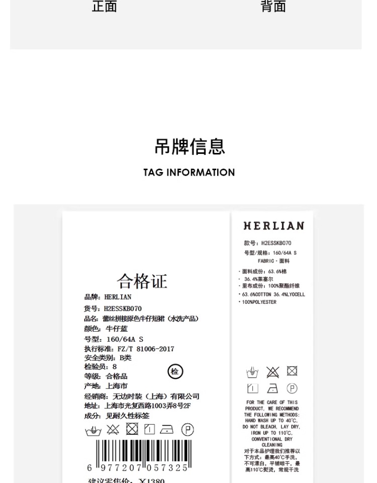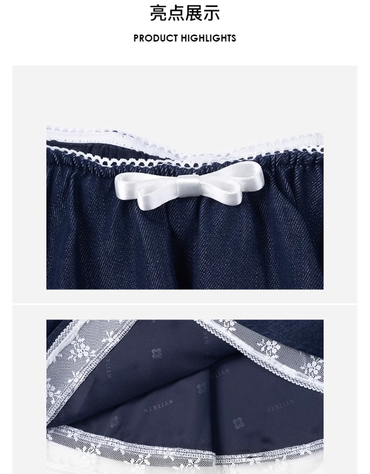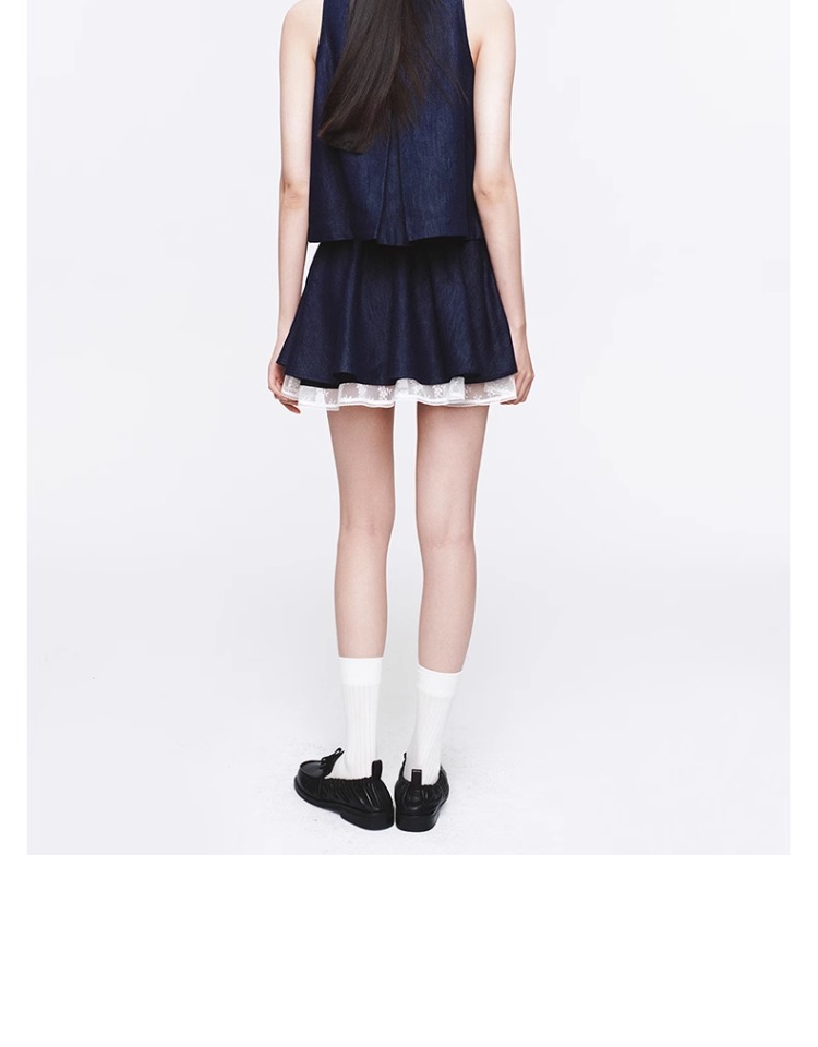 HERLIAN 2025年春季新品蕾丝拼接原色牛仔短裙