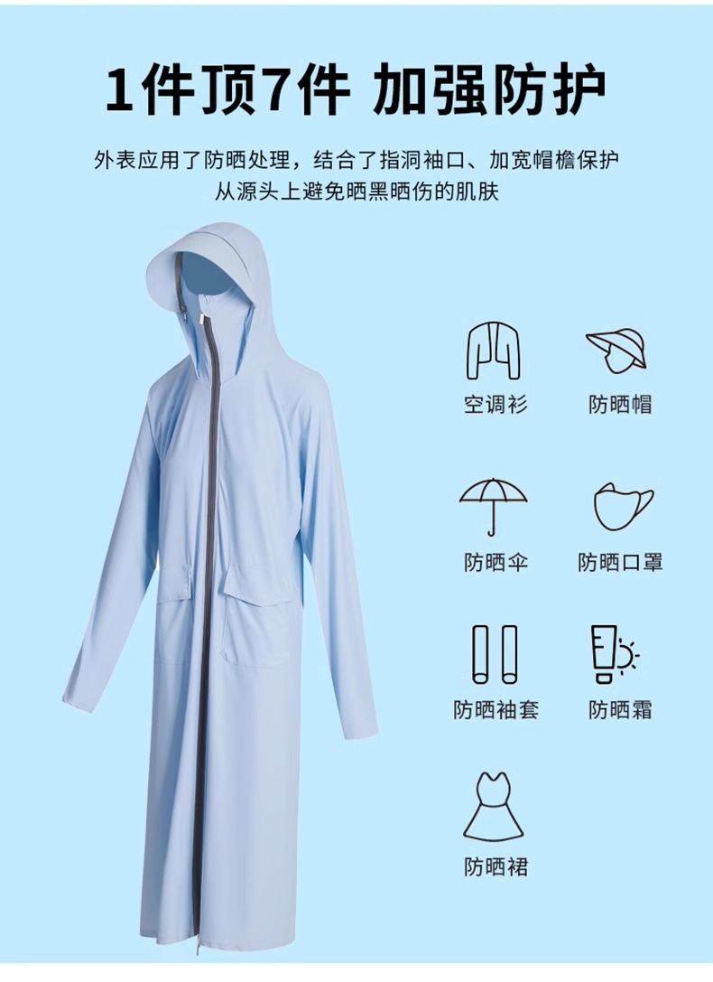 【原纱UPF50+防晒衣】长款全身防紫外线 电动车大码防晒服罩衫宽松