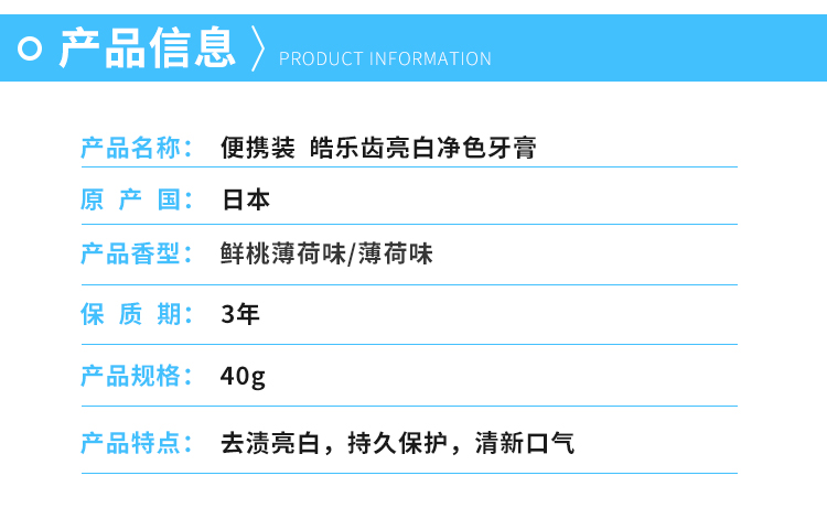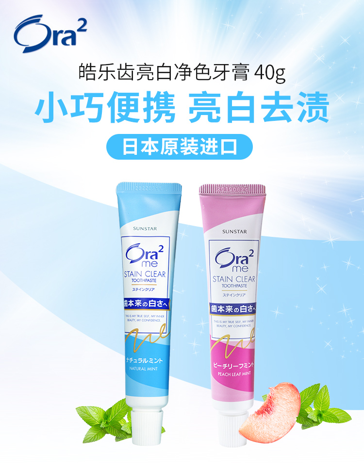 【旅行装】皓乐齿亮白净色牙膏天然薄荷味/鲜桃薄荷味40g 果味牙膏清新皓齿口气 102247/102248