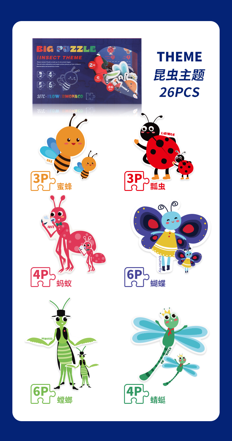 花芽大块纸拼图,由简到难算数增加,锻炼宝宝手部灵活力,采用原生纸浆压缩安全环保~