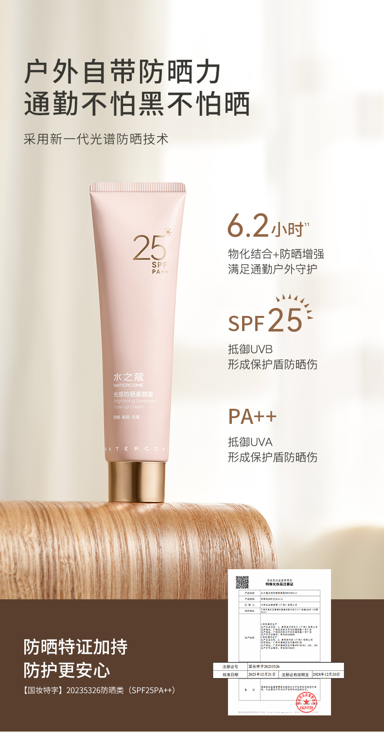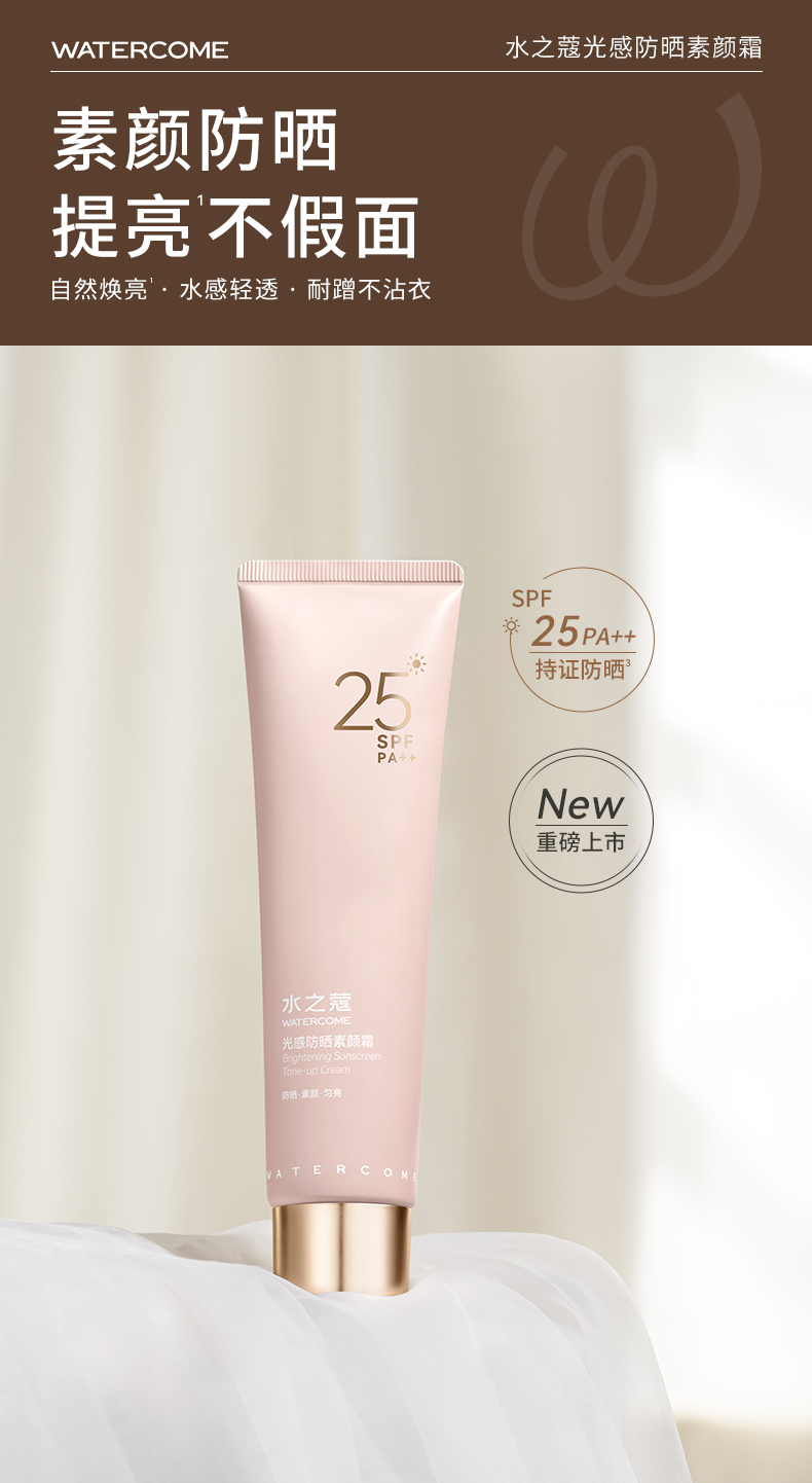 【任3件99元】【会员福利】水之蔻新品素颜防晒霜SPF25含烟酰胺100g