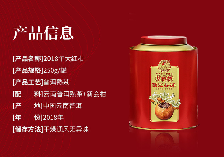 澜沧古茶2018年大红柑茶妈妈陈皮普洱熟茶新会橘普茶250g