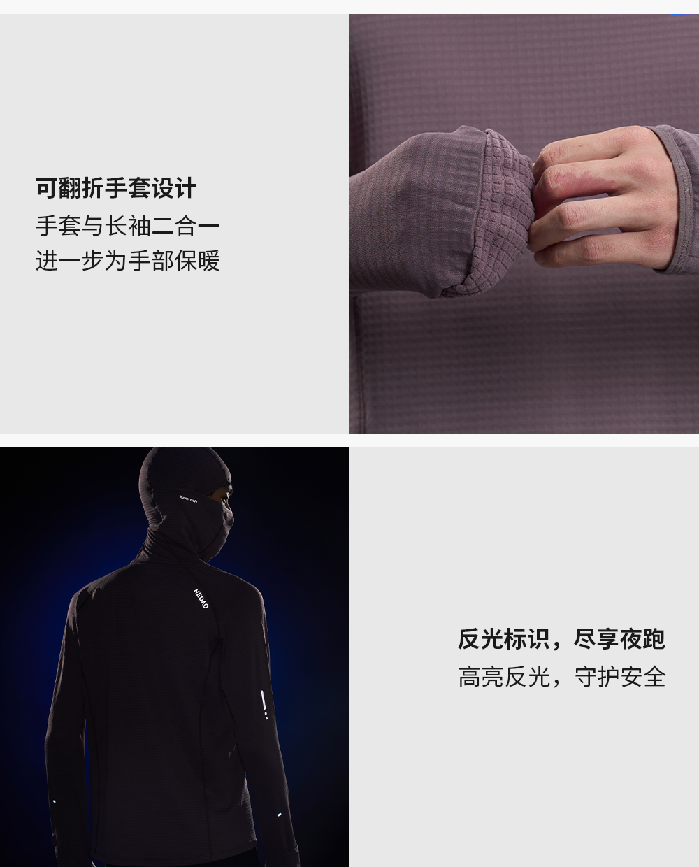 内道新品能量方格pro带帽长袖男士保暖透湿干爽户外运动跑步长袖