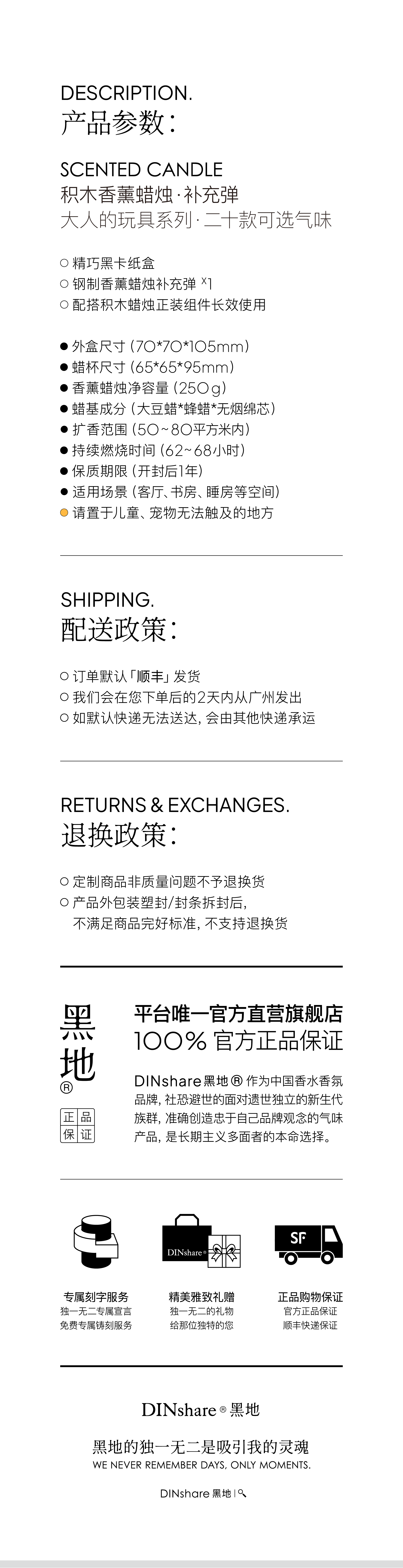 DINshare 黑地|积木香薰蜡烛 补充弹(不设雕刻)