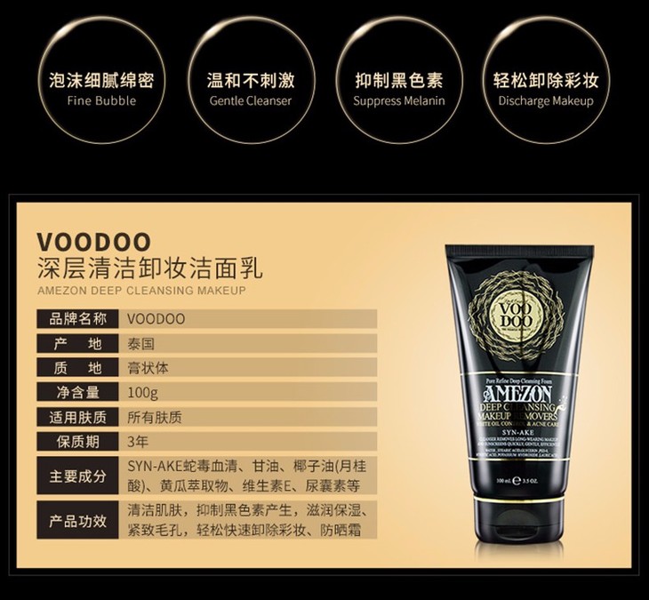 【精品推荐】【香港直邮】泰国VOODOO 蛇毒深层洁面乳 100ML