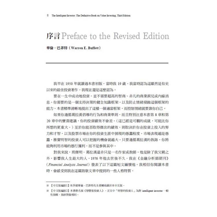 本書提供大量可靠、穩健且安全的投資原則,*新修訂版完整收錄葛拉漢著名弟子——華倫.巴菲特親筆撰寫的序言與附錄,並加入《華爾街日報》專欄作家傑森.茲威格對每章的現代化評論。茲威格以學術研究、精準觀察與近年市場案例,重新詮釋葛拉漢永恆智慧,使讀者能更清楚理解並應用大師思想。