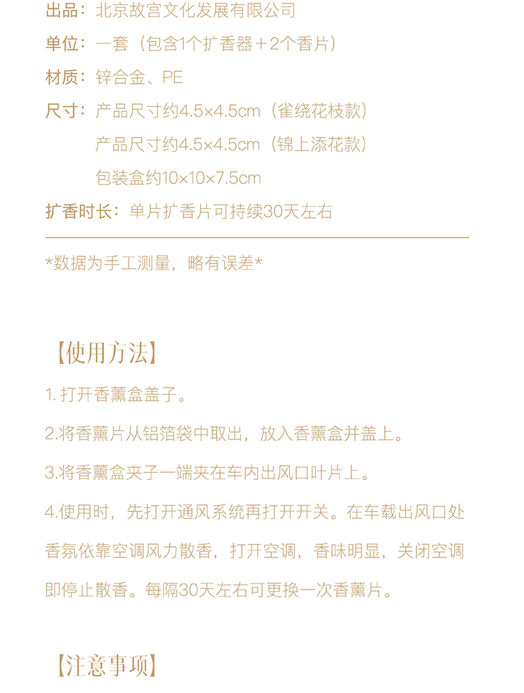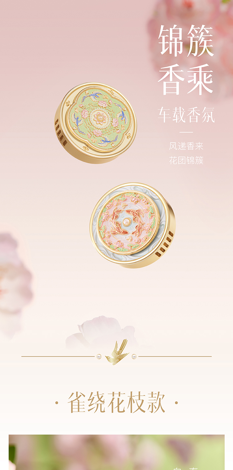 【故宫香氛】锦上添花雀绕花枝车载香薰汽车出风口香氛礼盒生日礼物