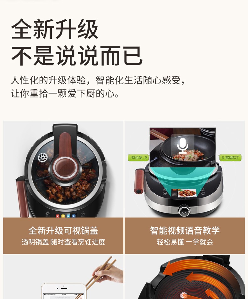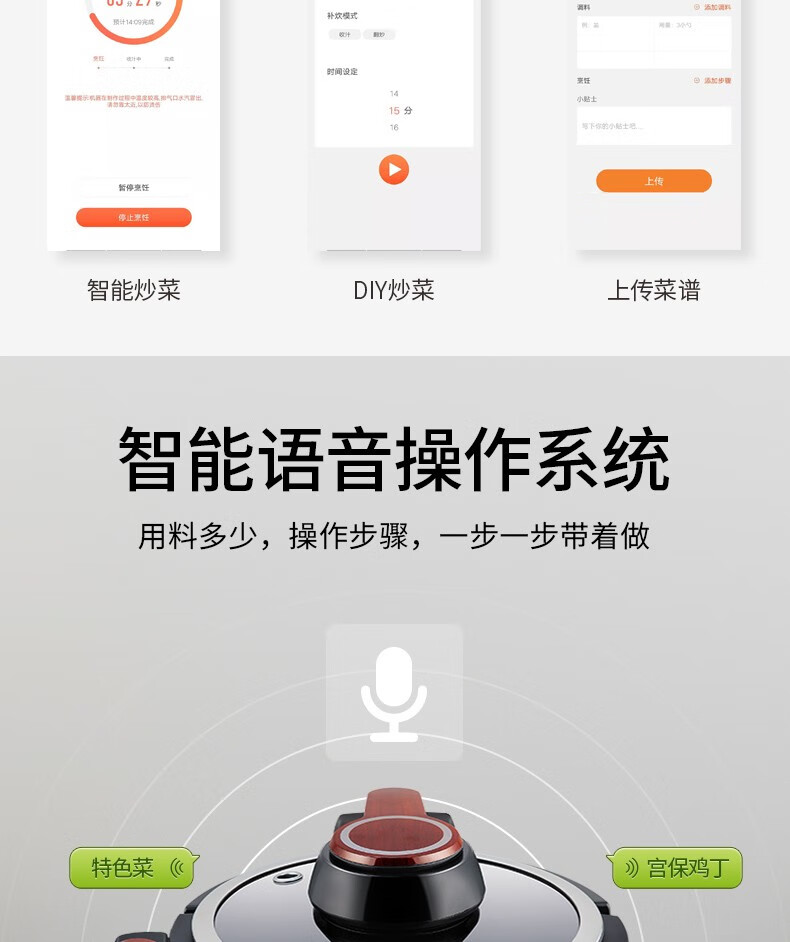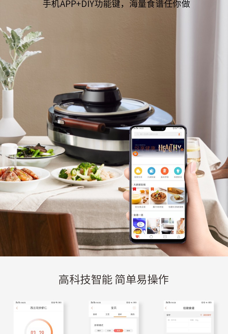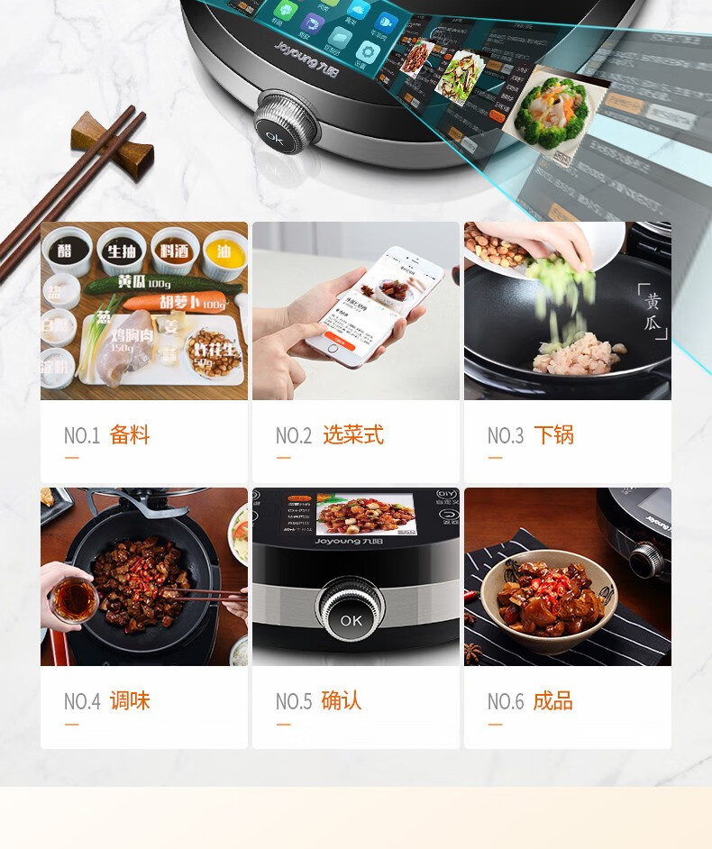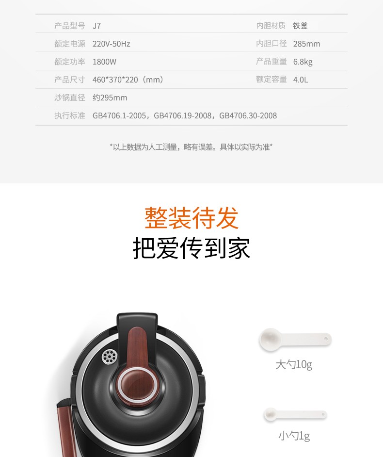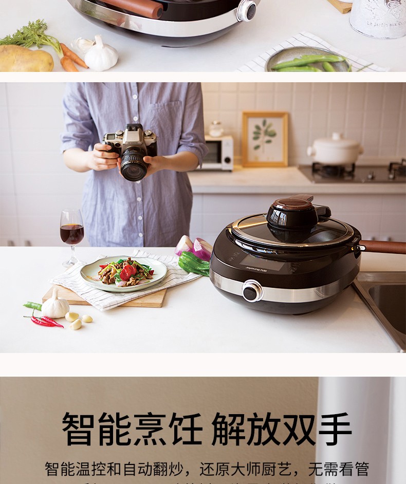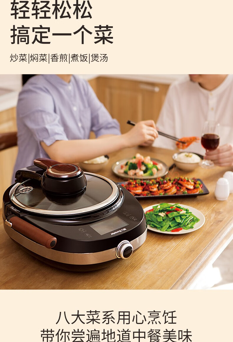 九阳(Joyoung) 炒菜机全自动智能料理炒菜机器人家用多功能烹饪锅炒菜锅烧菜锅无油炒J7 黑色