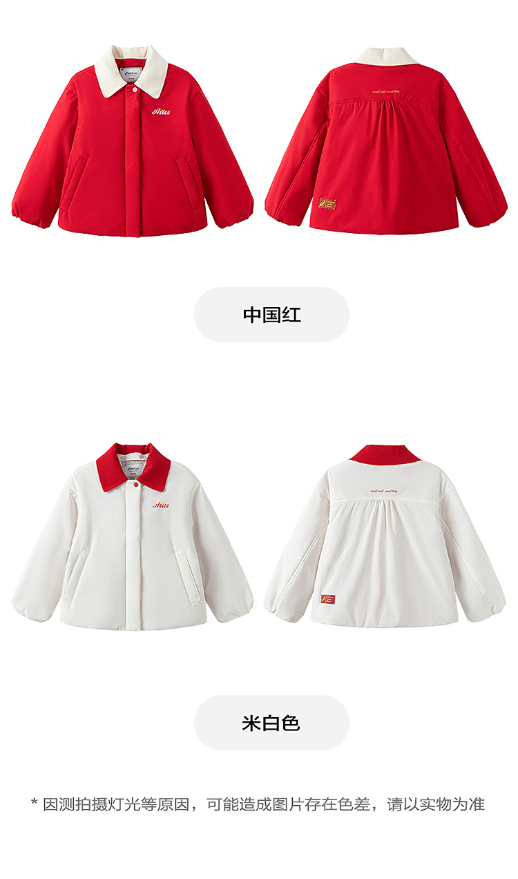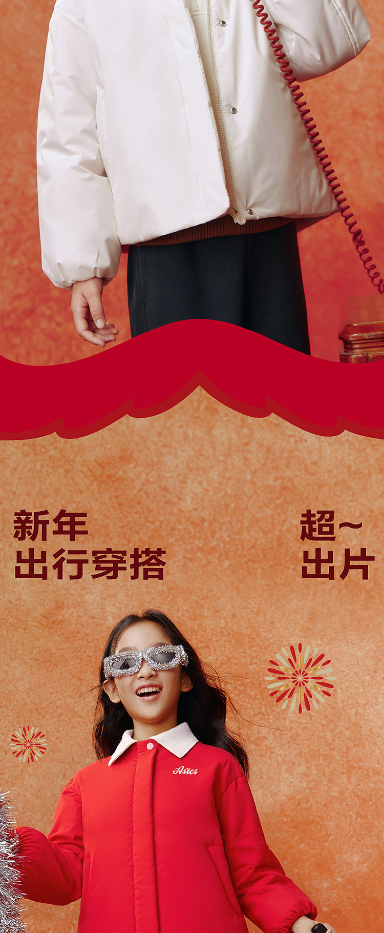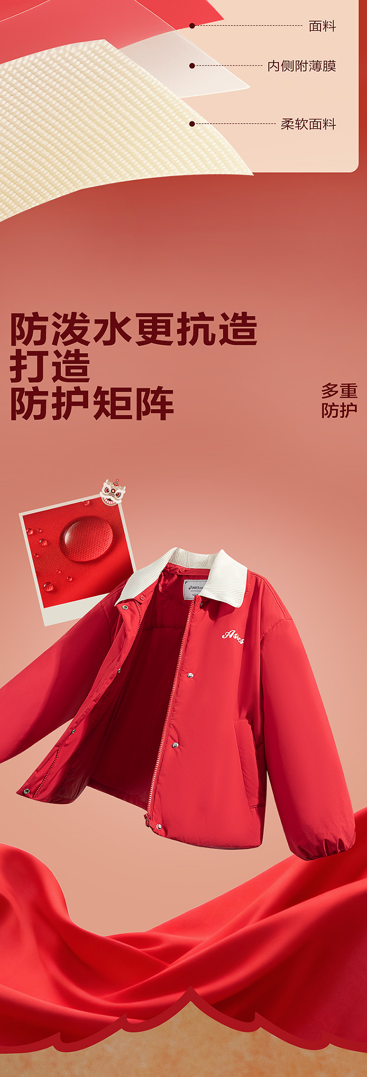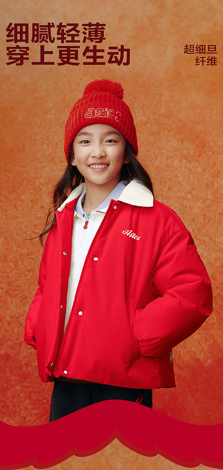 【商场同款】ASICS/亚瑟士儿童2026新年女童花苞袖polo领棉服潮流