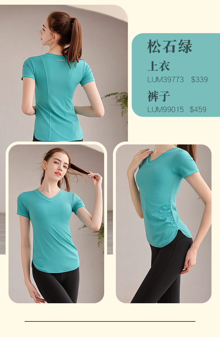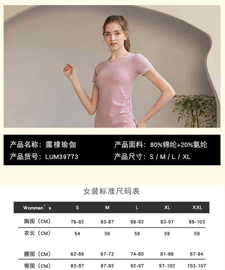 LUM39773露檬瑜伽运动短袖轻薄双面布(含胸垫)