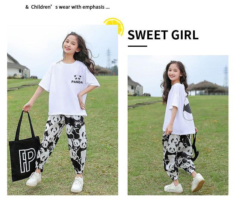 女童夏装半袖套装新款短袖防蚊长裤儿童女孩中大童运动休闲两件套