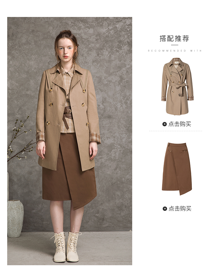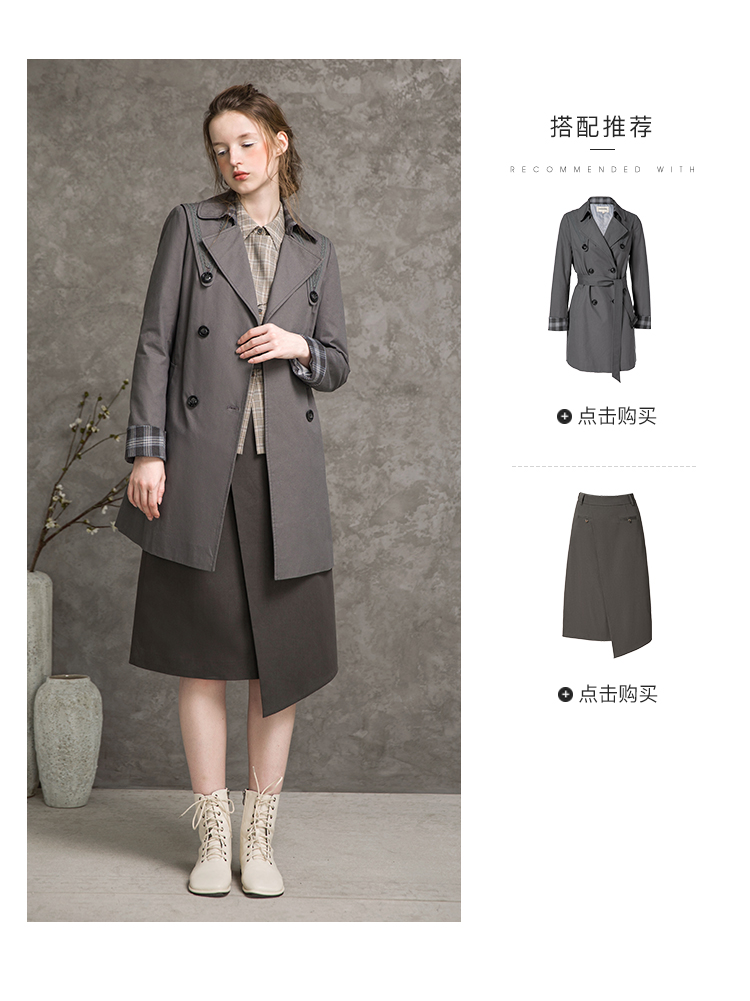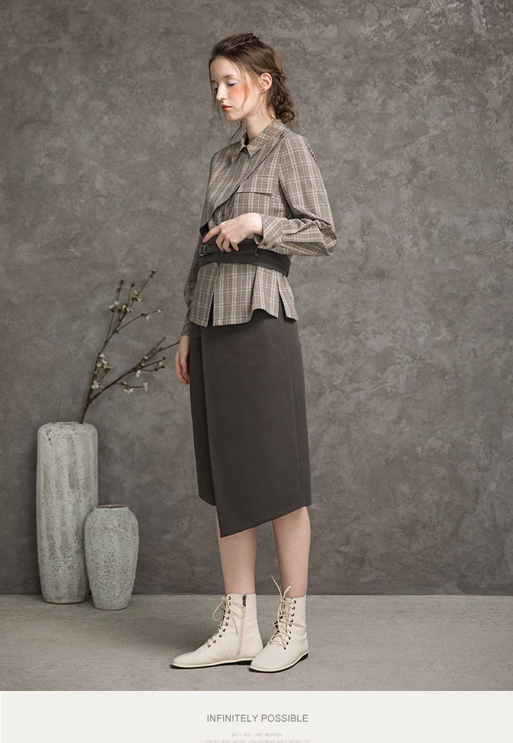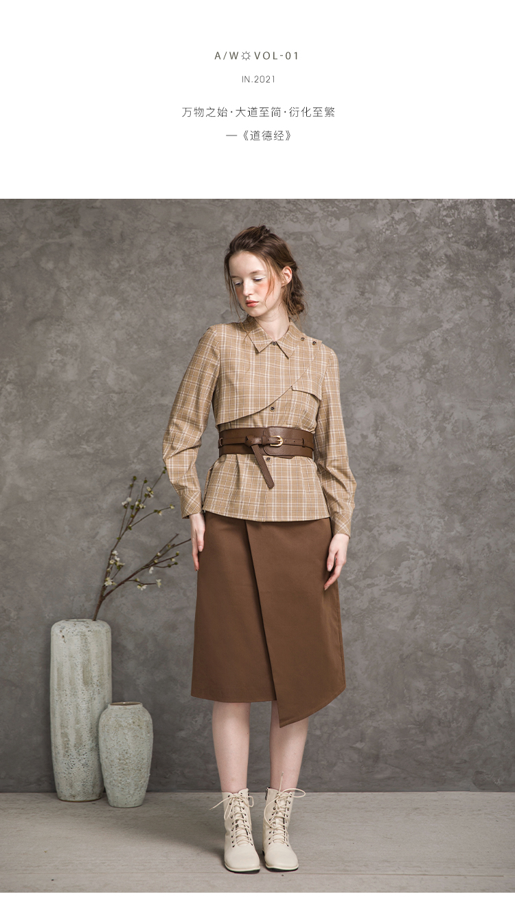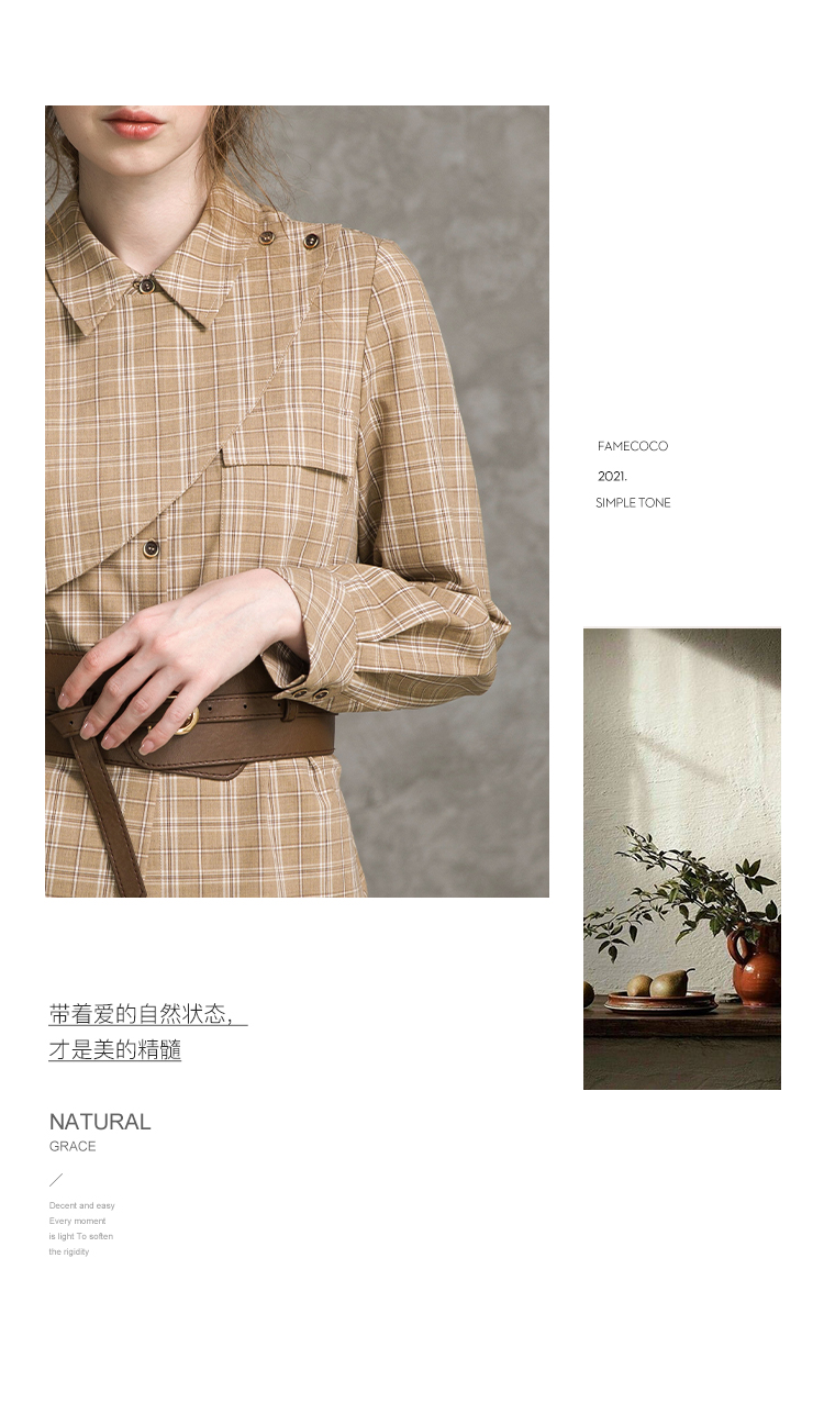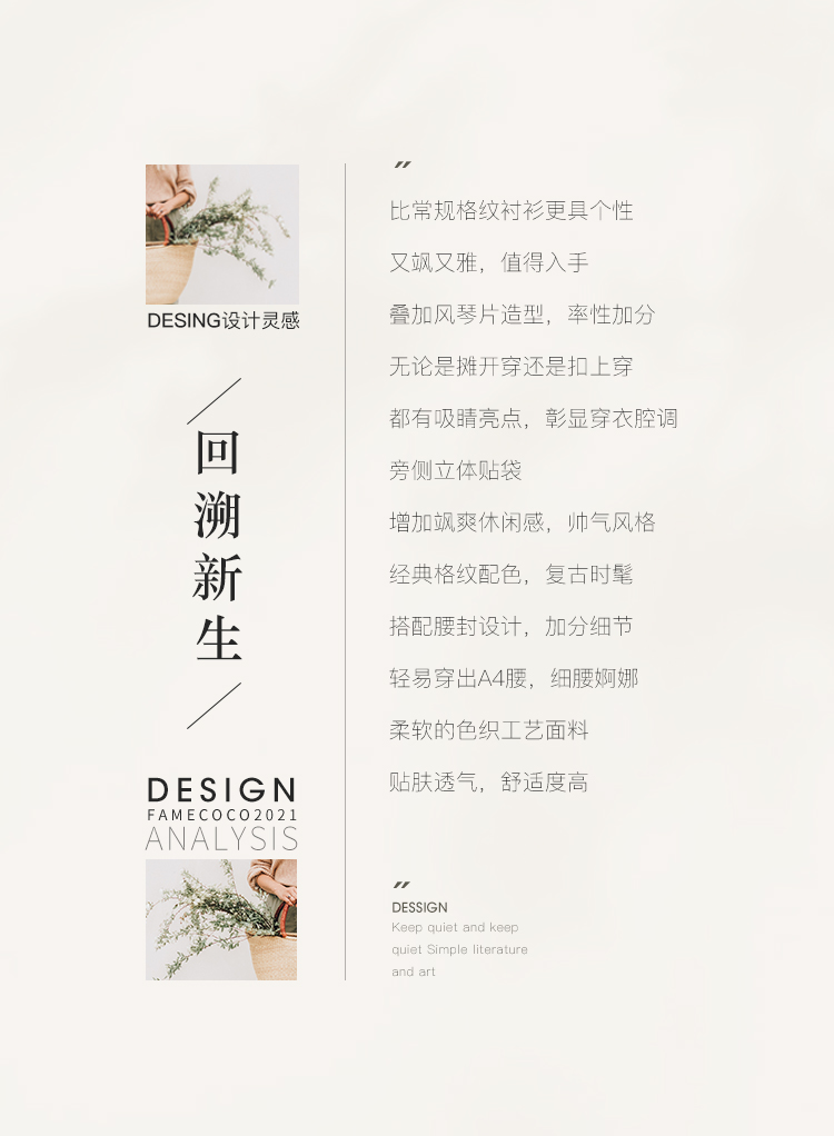 Famecoco范可儿个性格子衬衫女秋薄款腰封收腰衬衣F216BH013