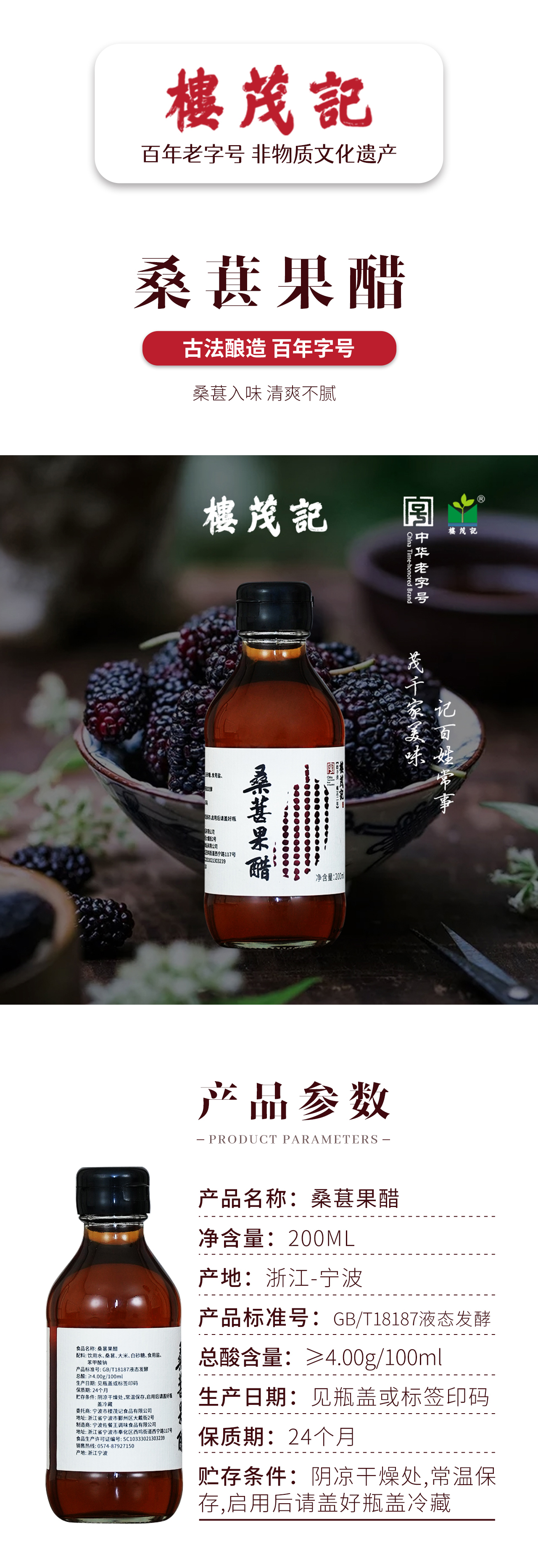 楼茂记435ml美满五年陈无添加玫瑰米醋