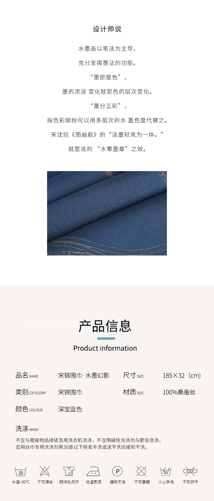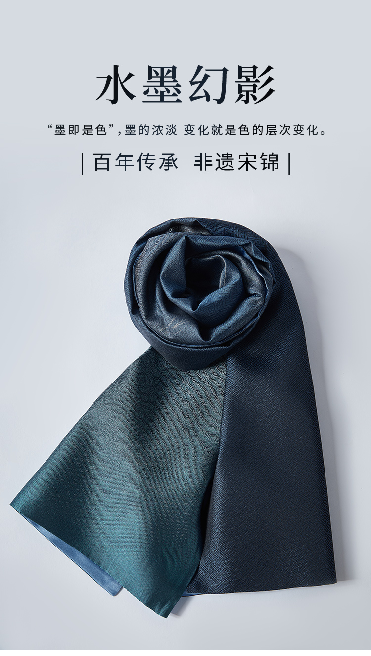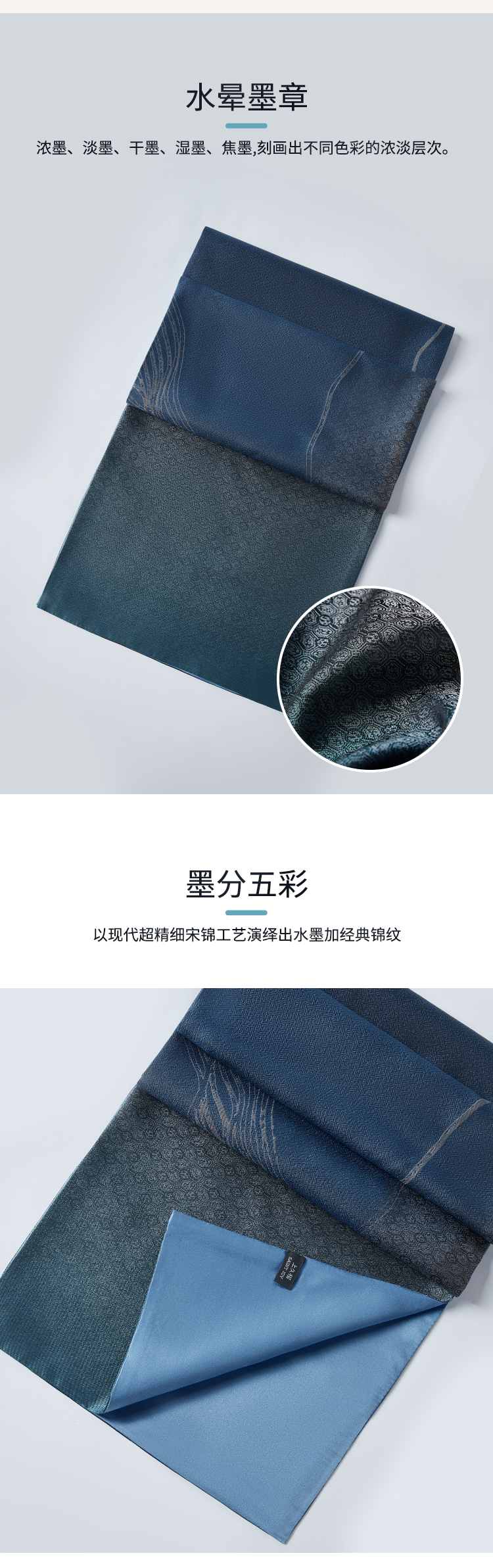 SAINTJOY/上久楷宋锦围巾 水墨幻影深宝蓝色SCS20001
