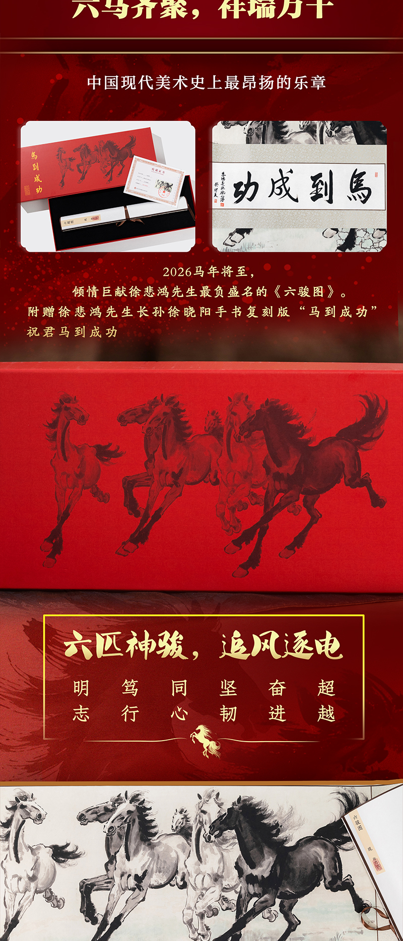 徐悲鸿《六骏图》匠心典藏版|一笔奔马,千年气韵,马到成功|真迹底本高清复刻,12轮严苛校色,全手工制作,典藏百年如新