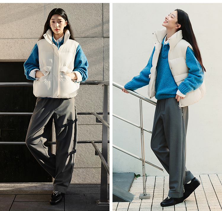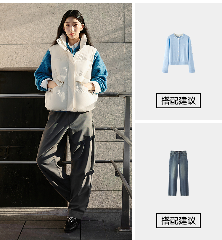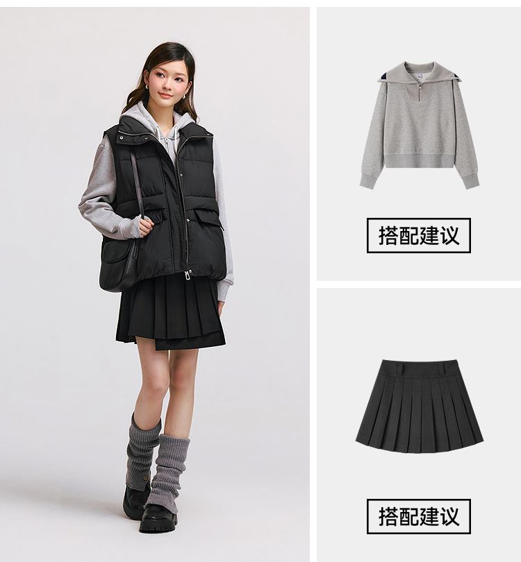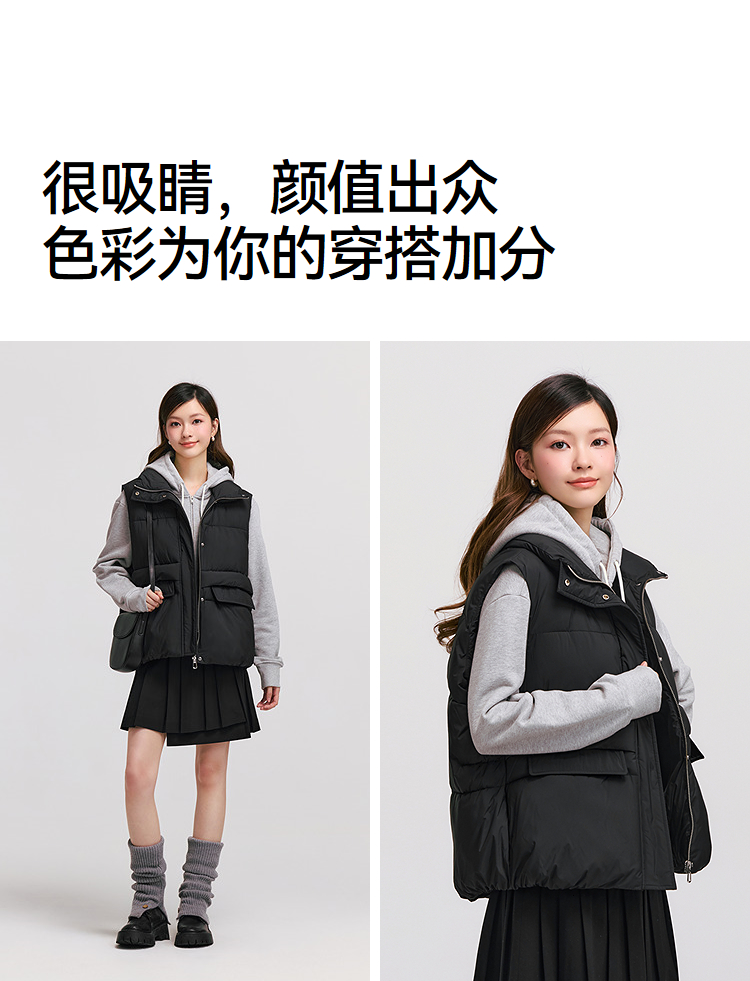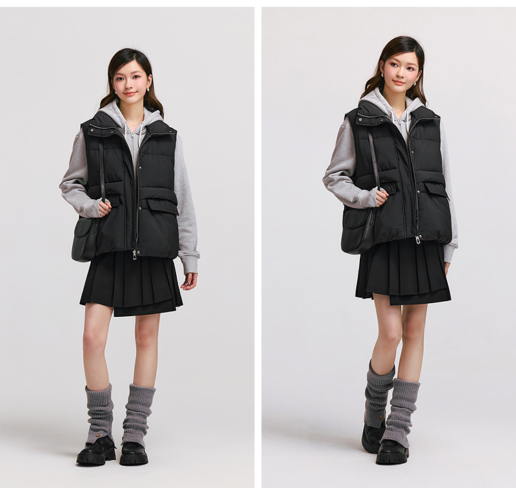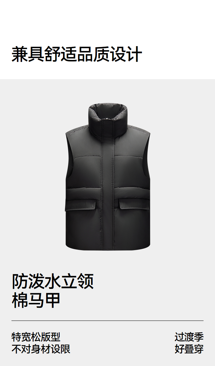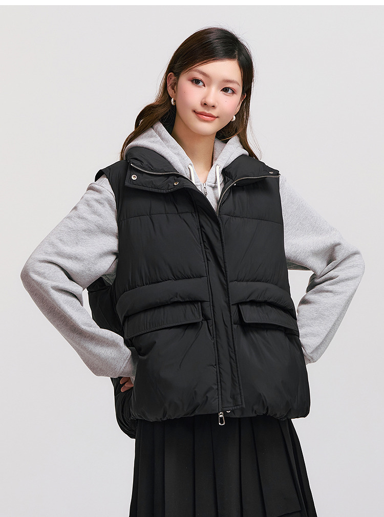 森马棉马甲女冬季防泼水纯色oversize立领面包服叠穿时尚百搭外套