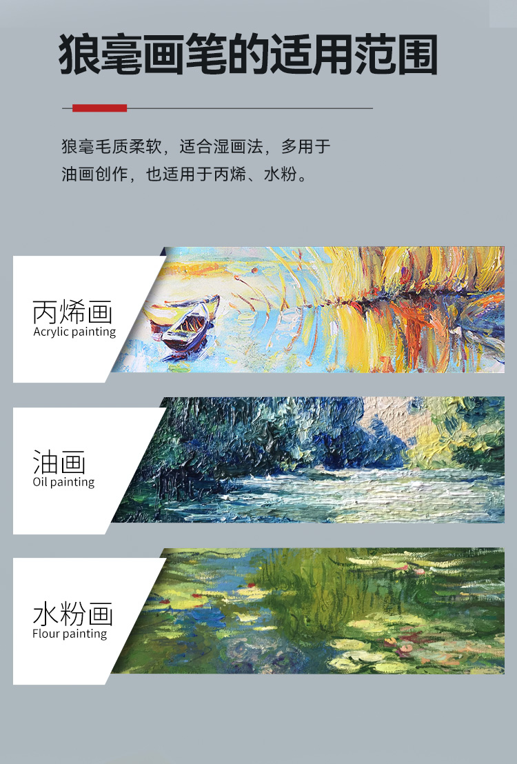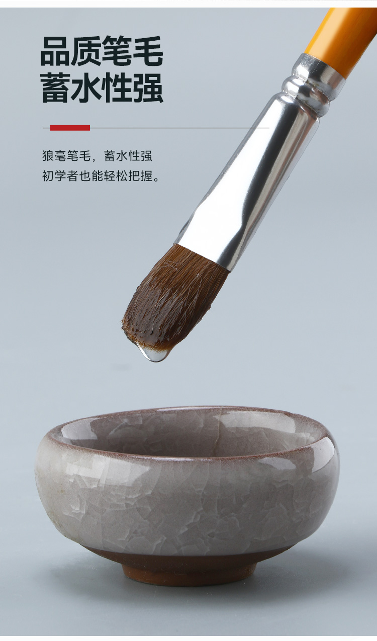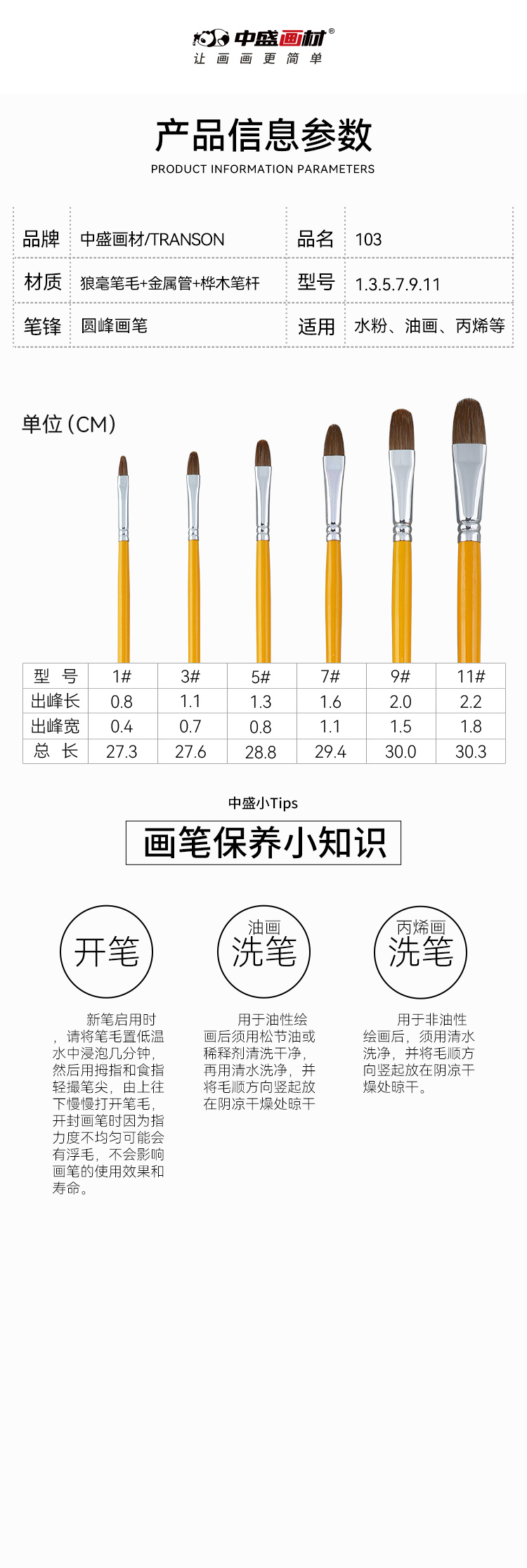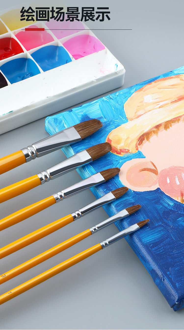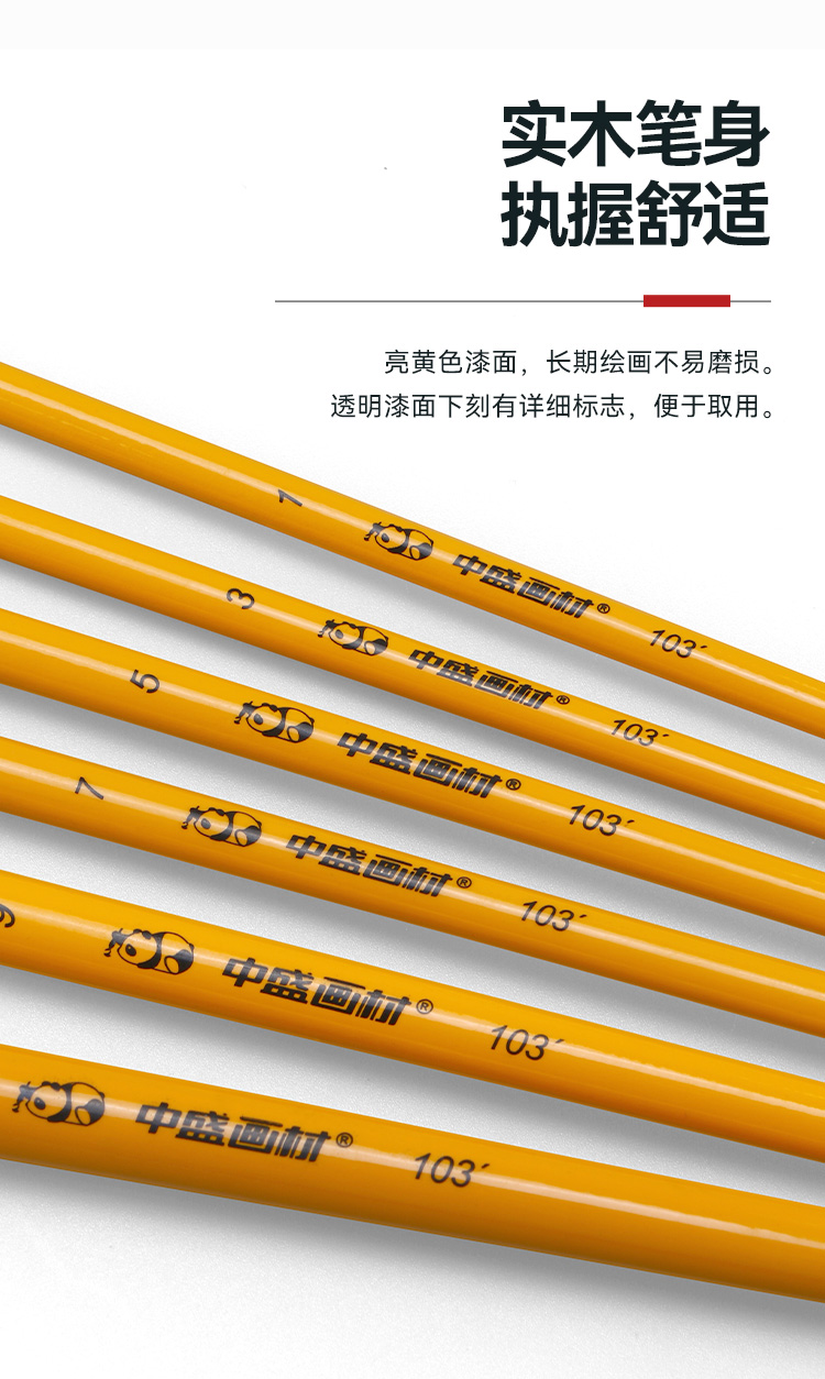 中盛画材狼毫水粉笔103油画笔黄色长杆丙烯画笔6支装水彩笔套装笔