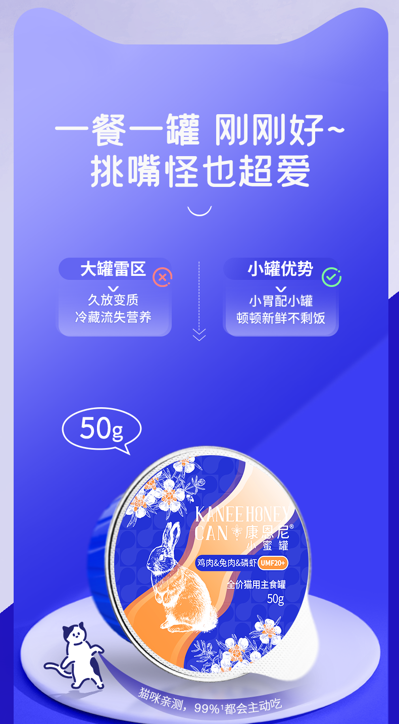 康恩尼 猫咪全价主食小蜜罐 50g/罐 添加新西兰进口麦卢卡蜂蜜 提升免疫力 呵护胃肠道 6重0添加