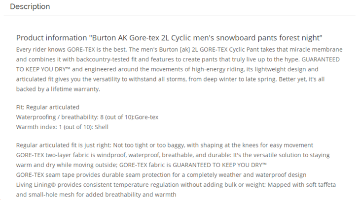 Burton 20-21款 AK GORE CYCLIC PT 男款滑雪裤 深绿