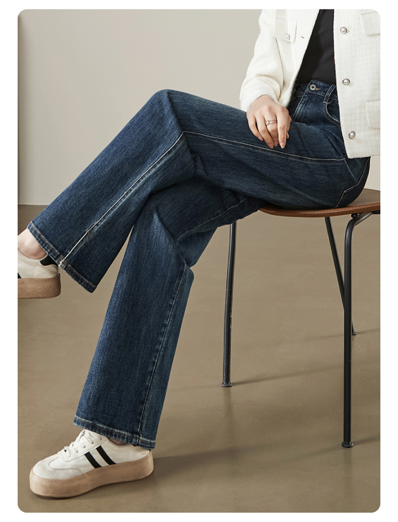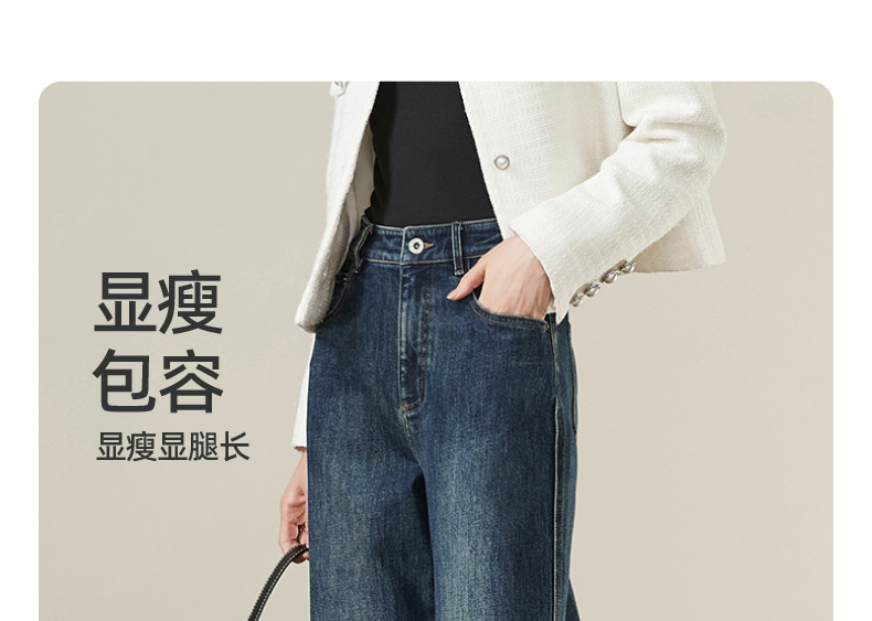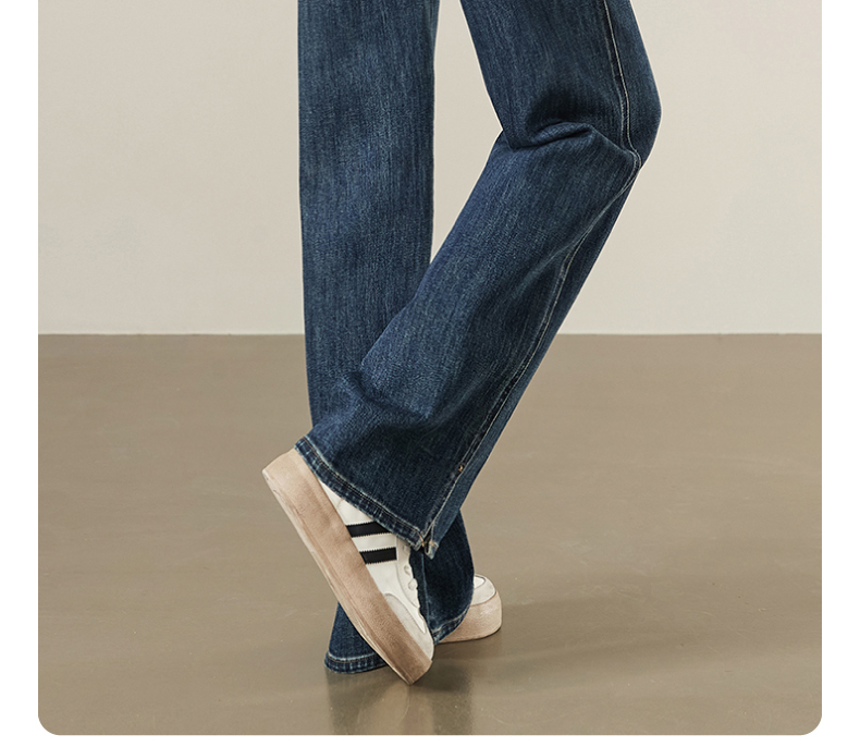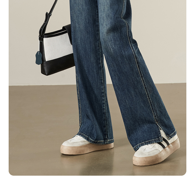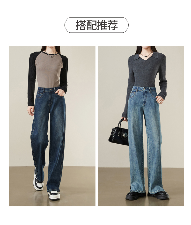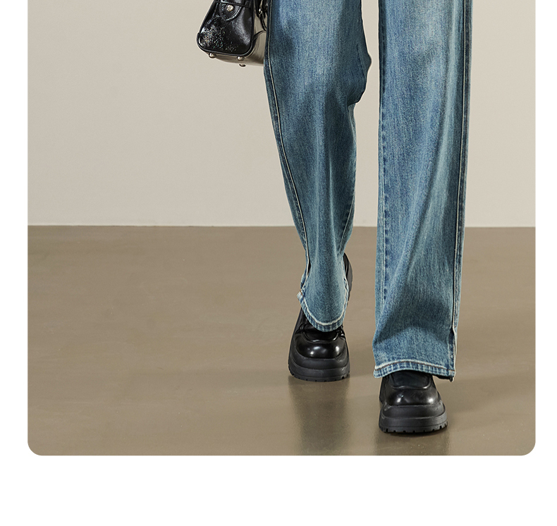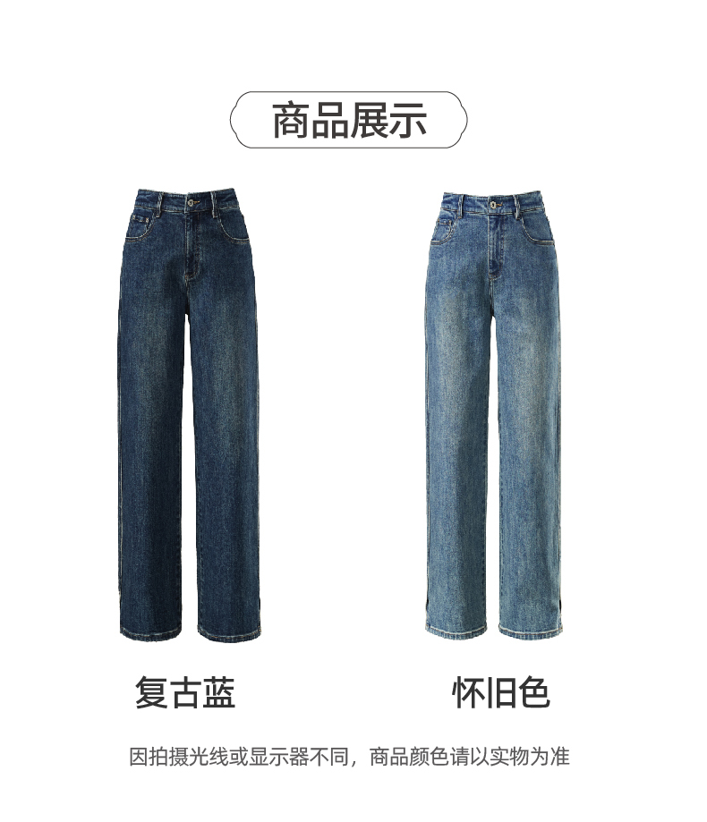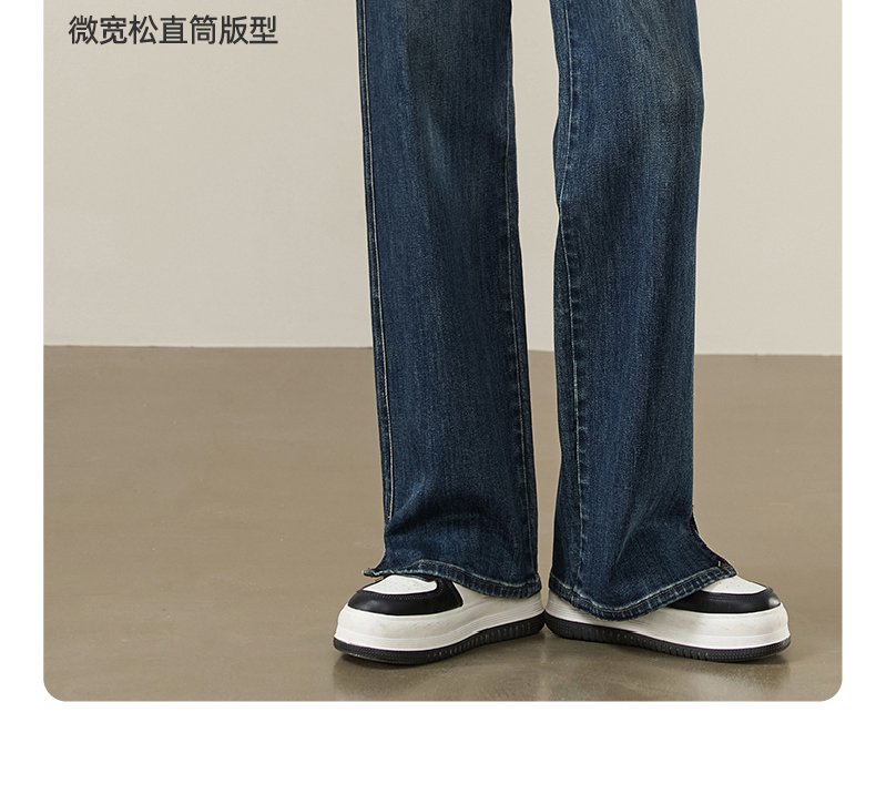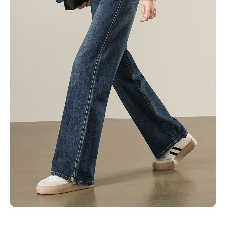 【25年春季新品】逸阳复古开叉直筒牛仔裤女弹力显瘦窄版阔腿长裤子1398