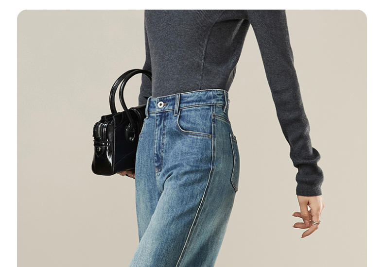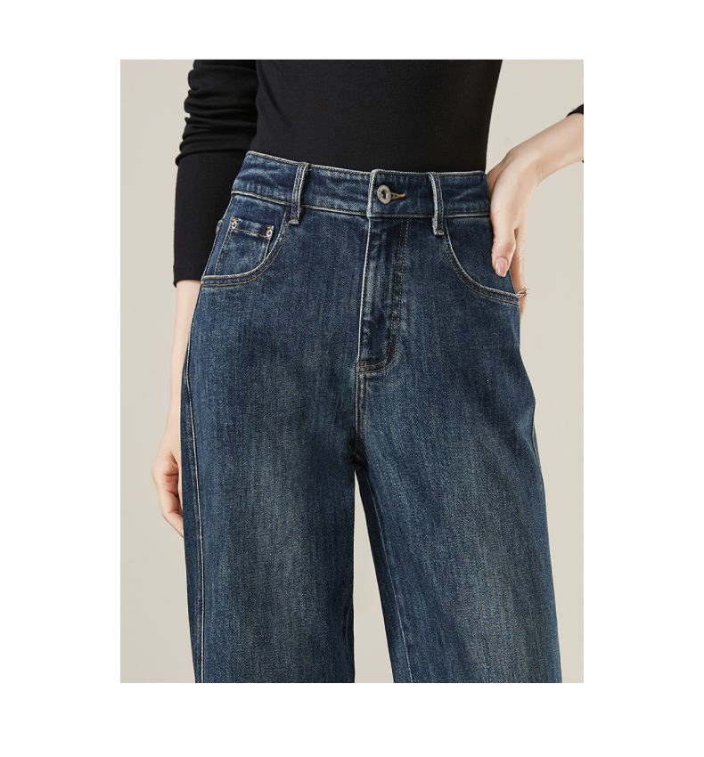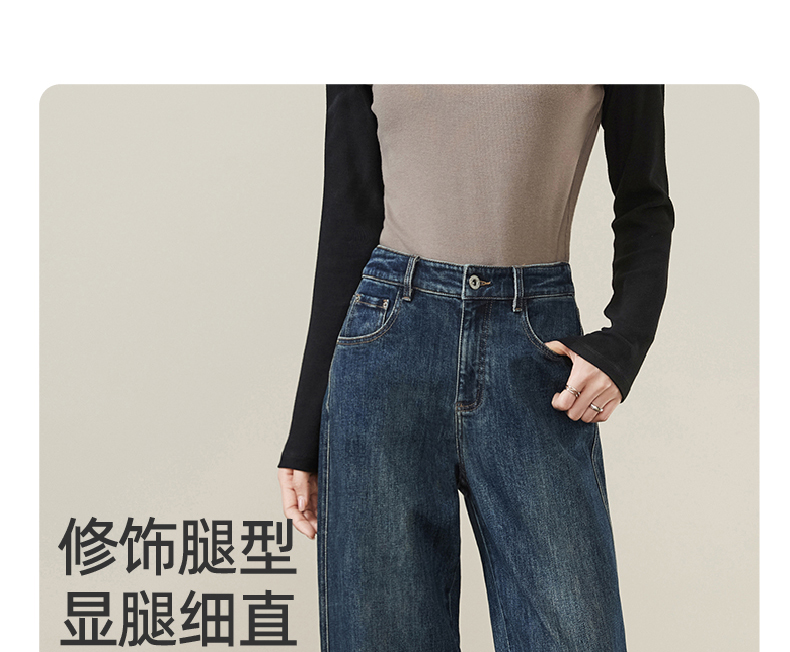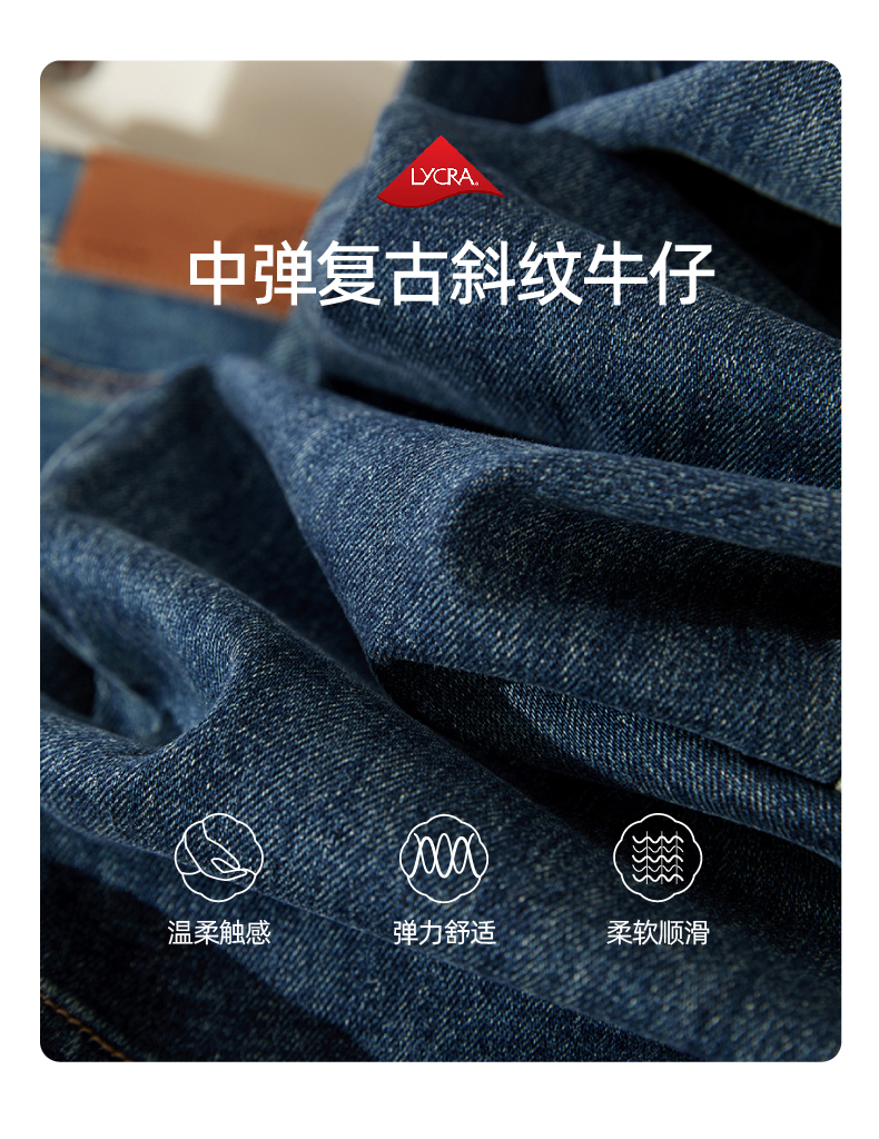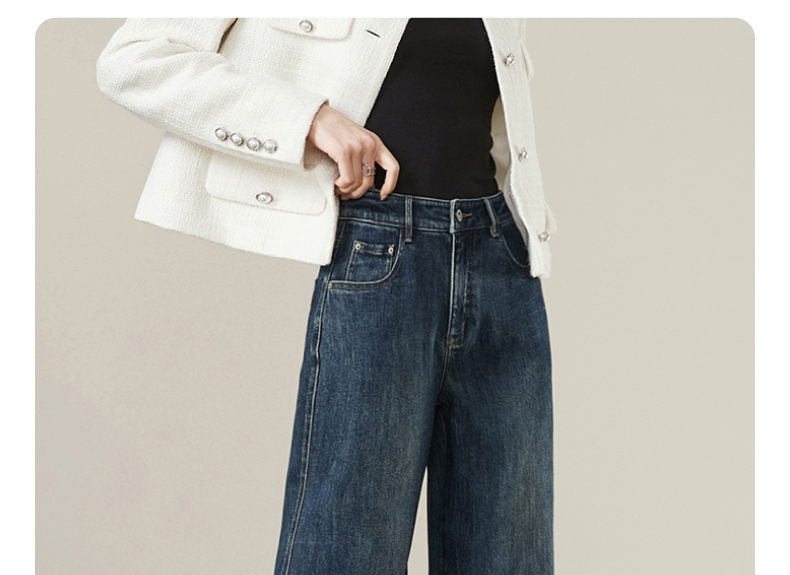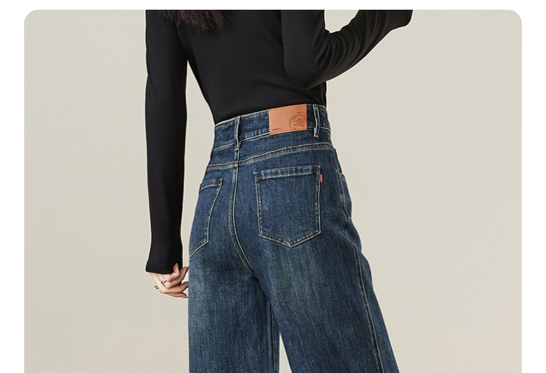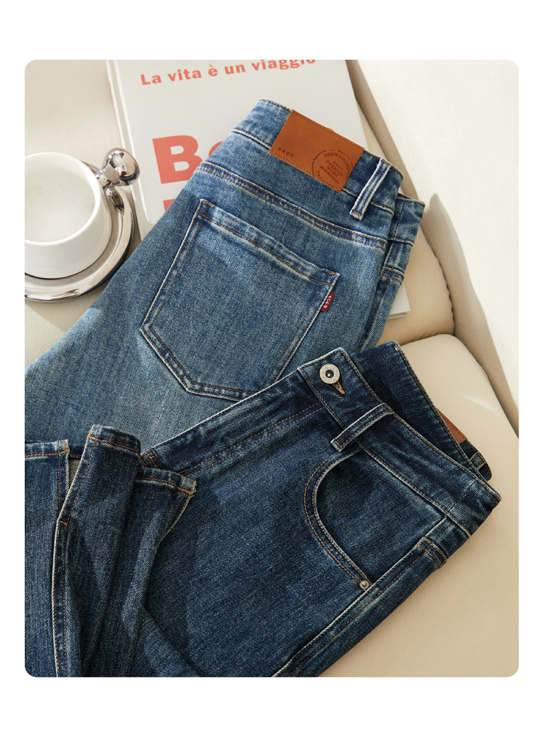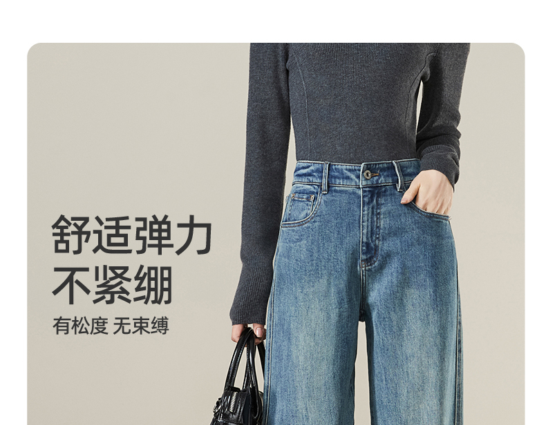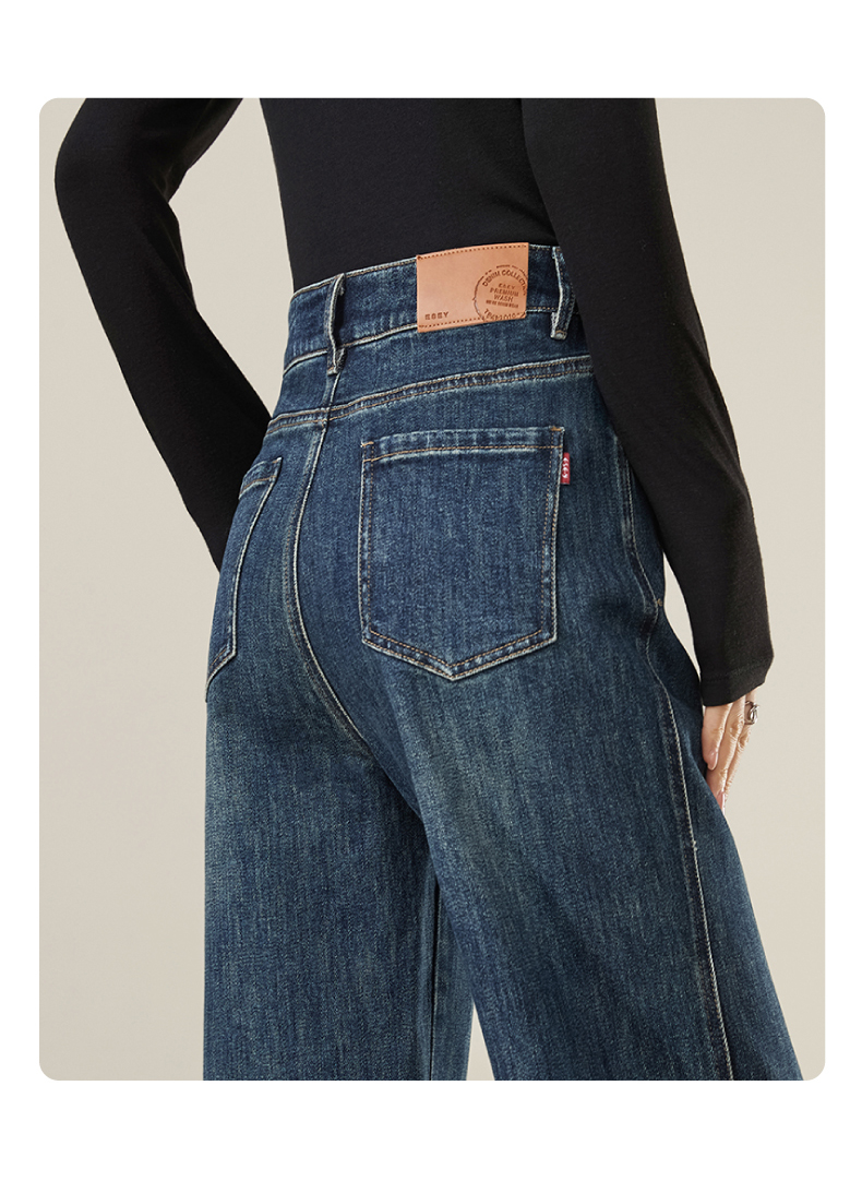 【25年春季新品】逸阳复古开叉直筒牛仔裤女弹力显瘦窄版阔腿长裤子1398