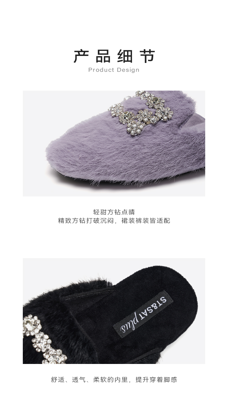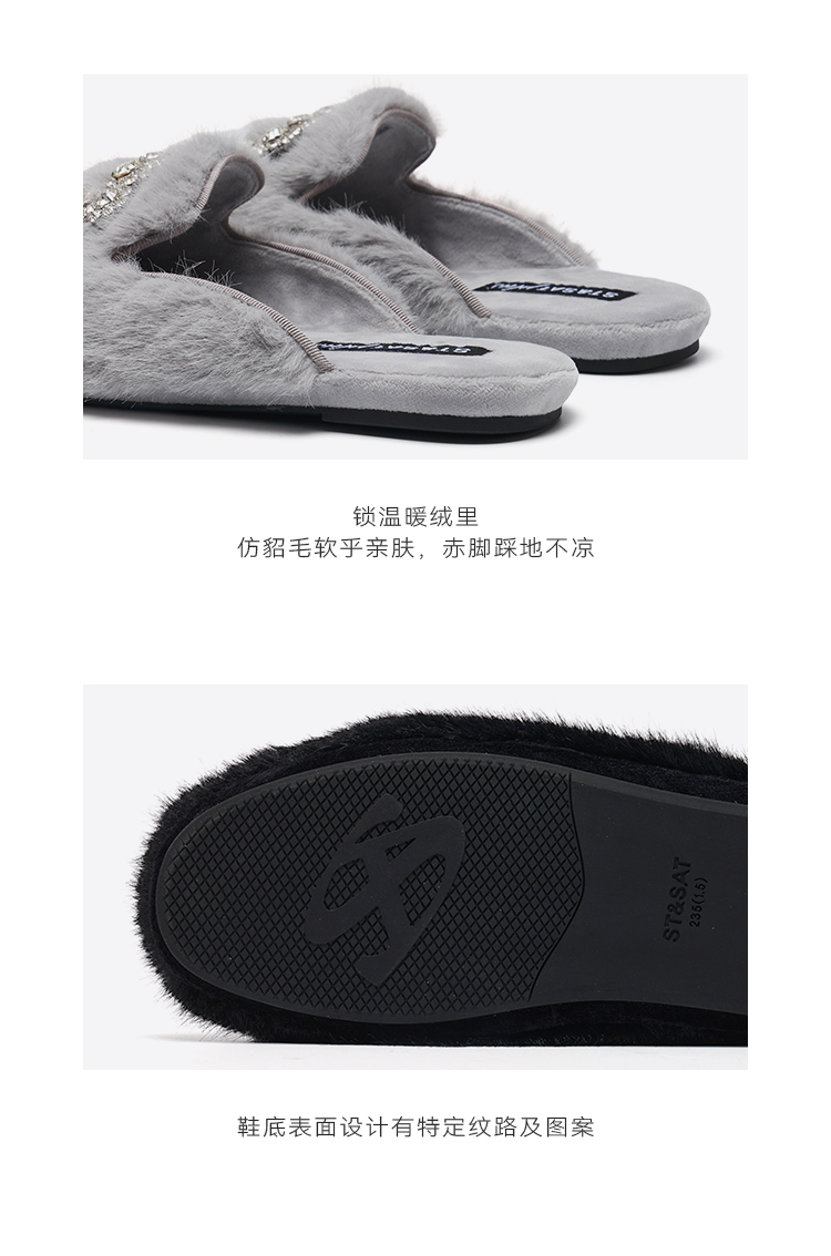 【微醺系列】星期六都市丽人钻扣毛绒穆勒拖SSD4114160