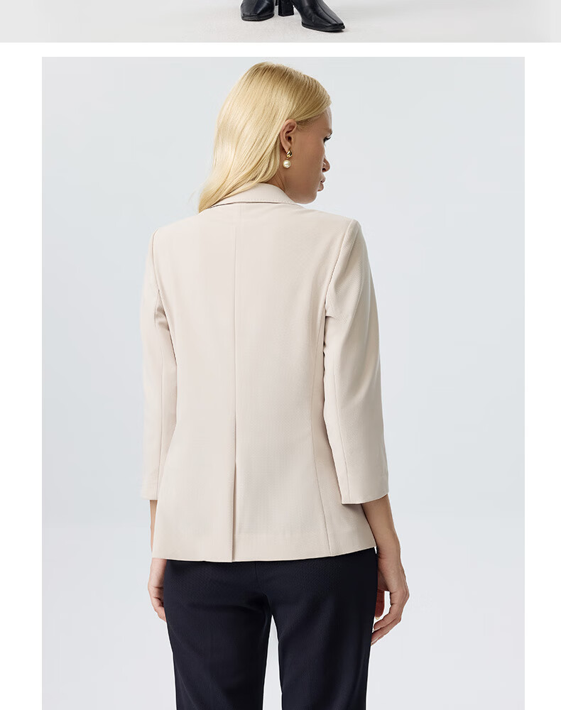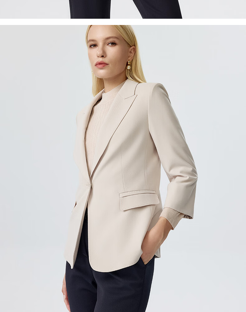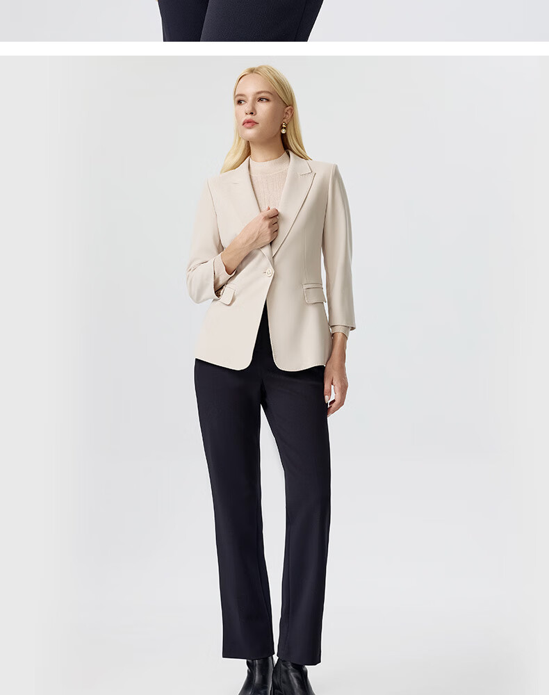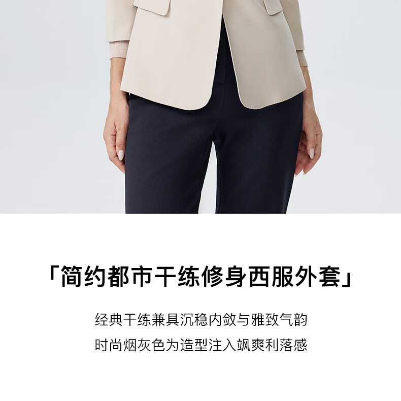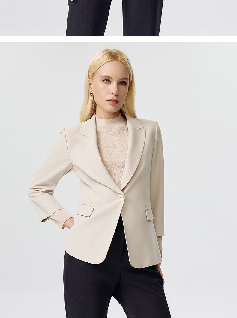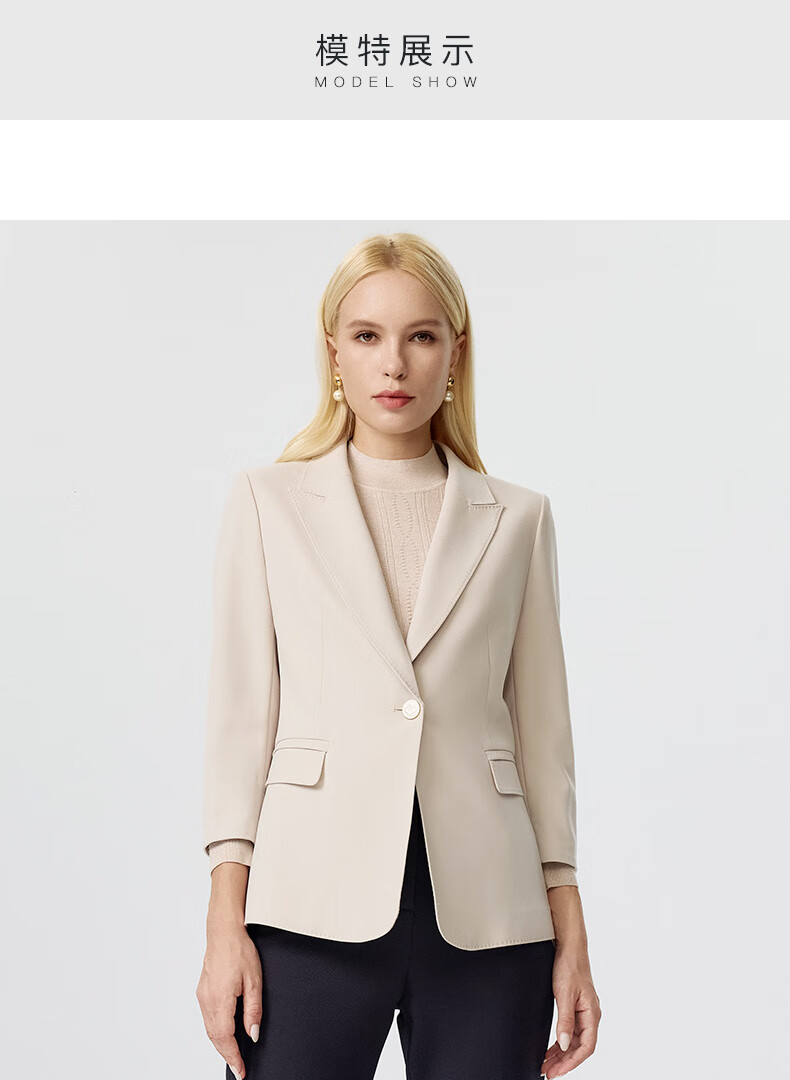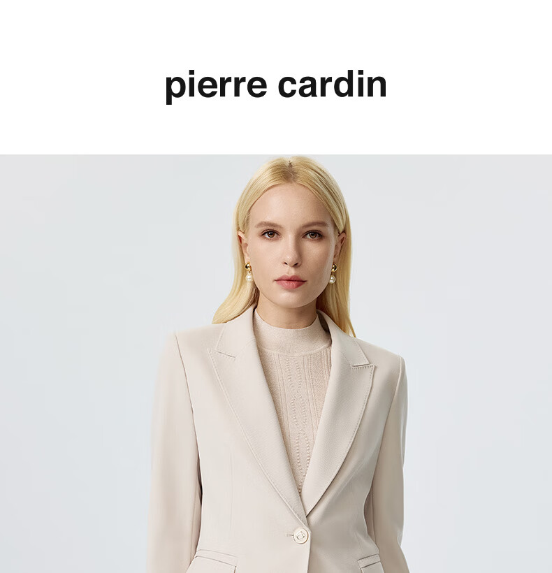 皮尔卡丹女装西装春秋浅米色宽松商务职业西服上衣P3216U3075M1