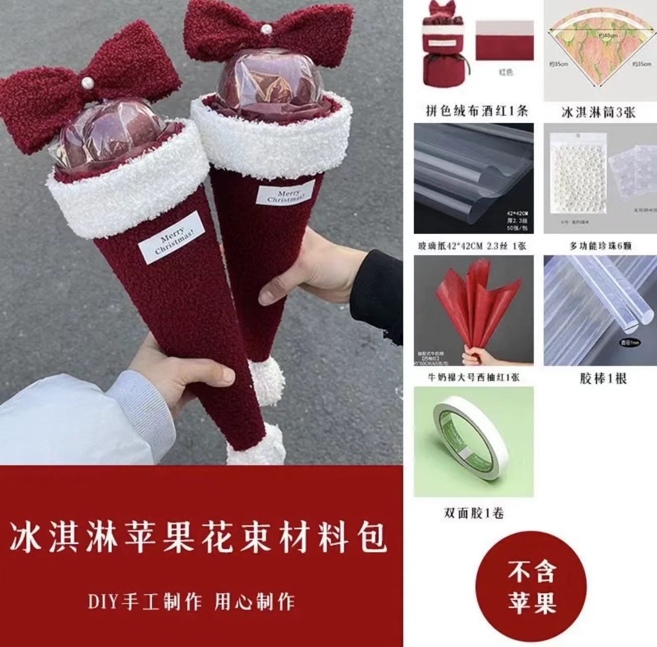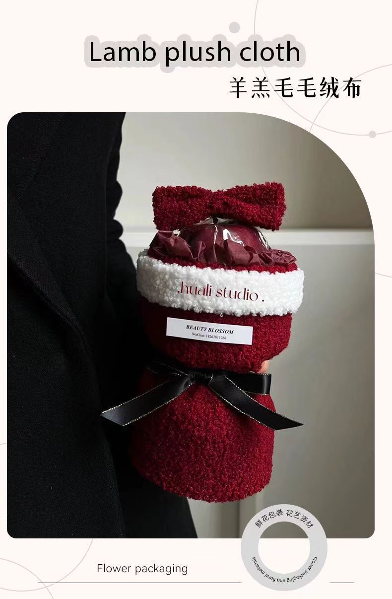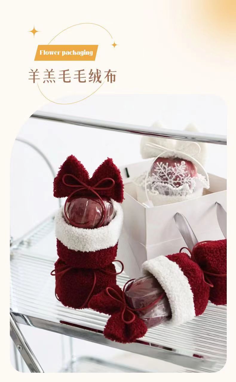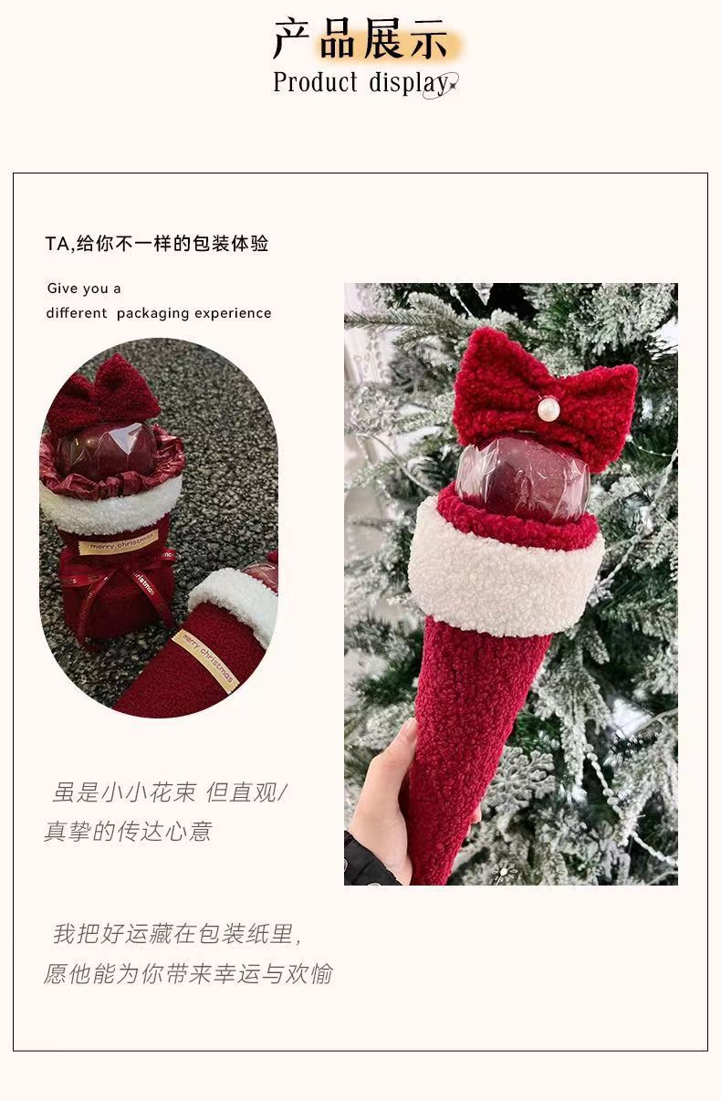 【平安夜礼物!】圣诞节礼物创意单支平安夜平安果毛绒圣诞花束diy材料送女友礼品。ry