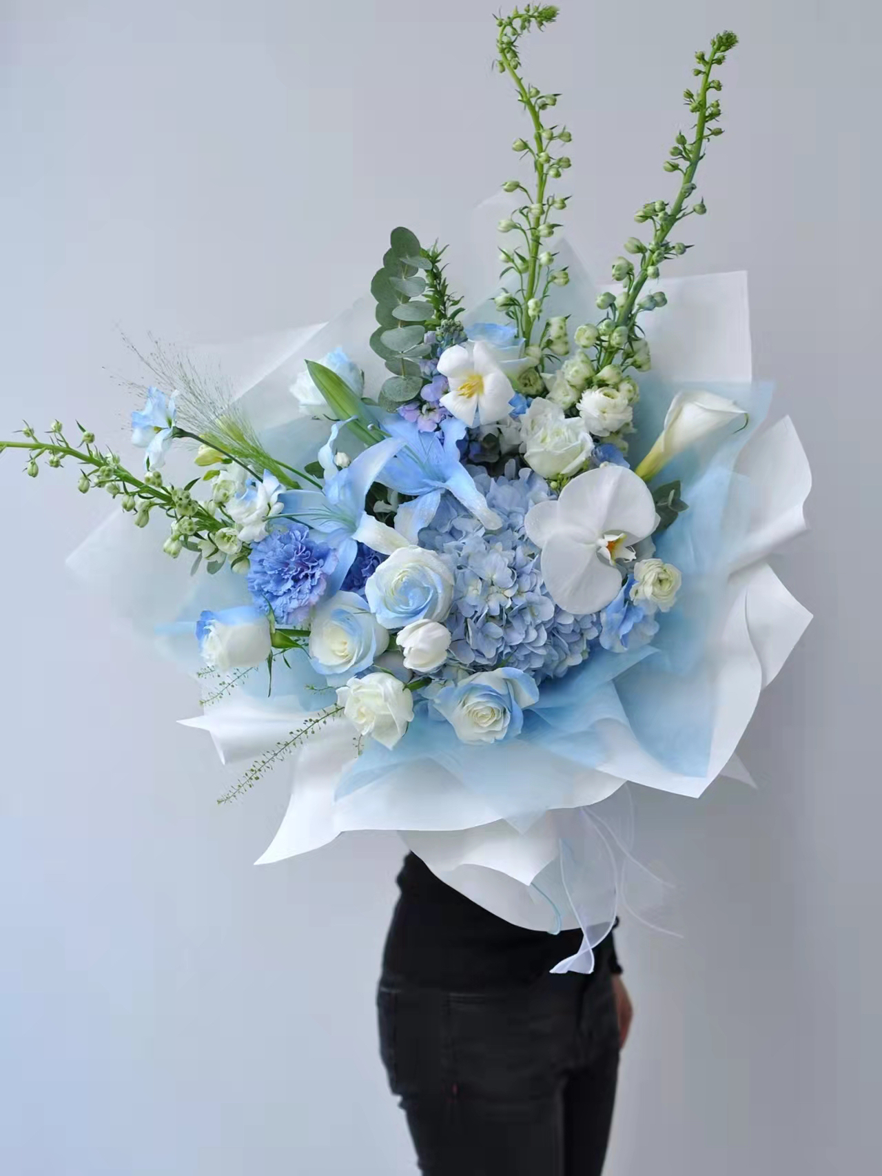 《盛夏沁凉》大飞燕碎冰蓝百合花束