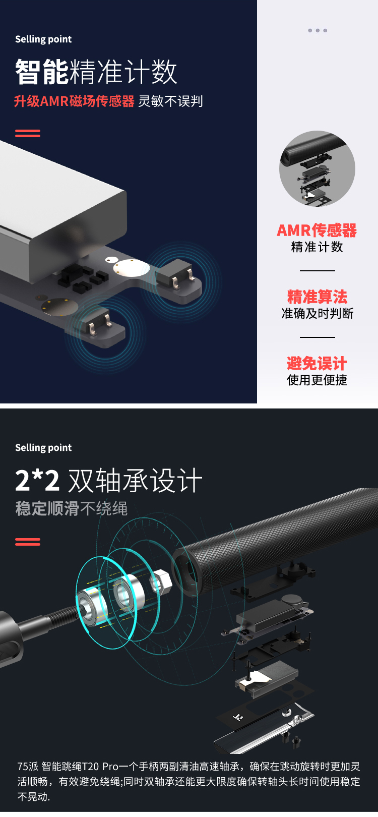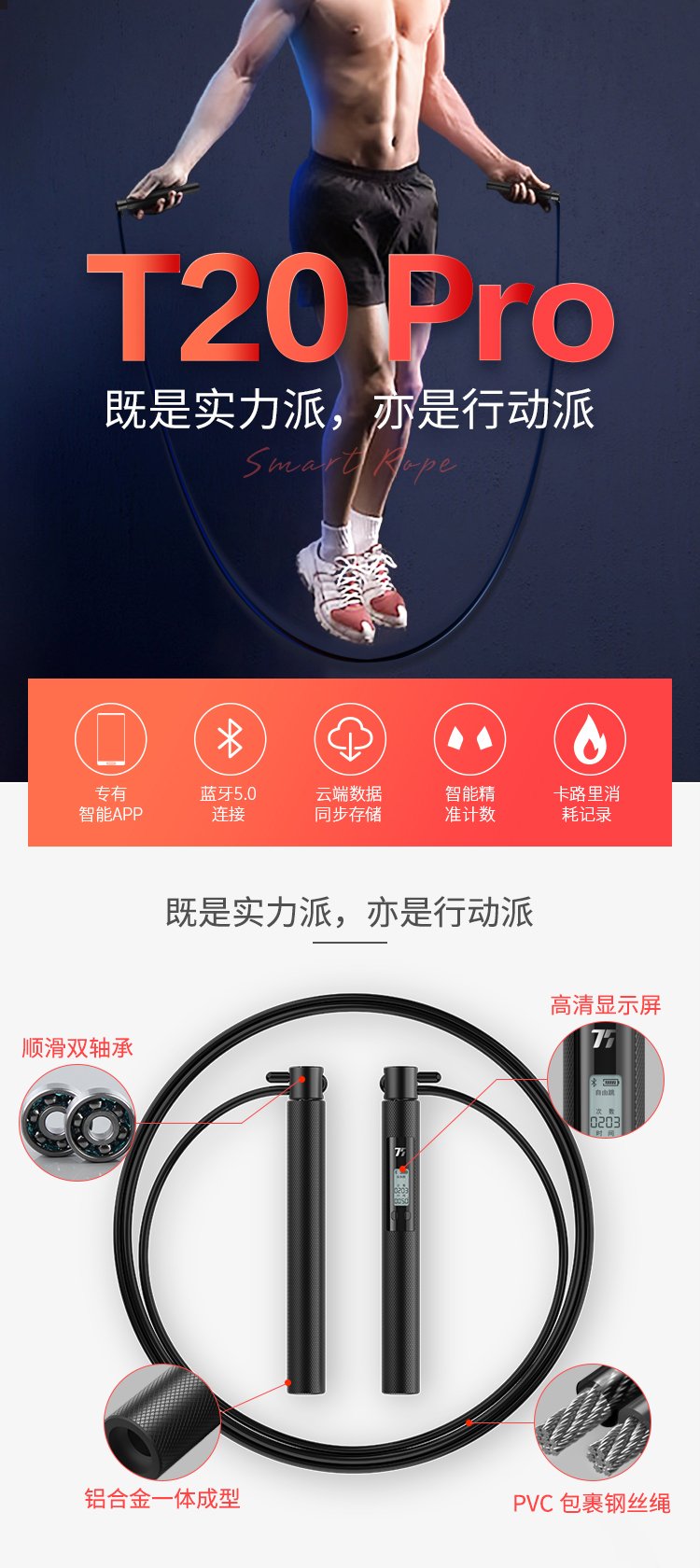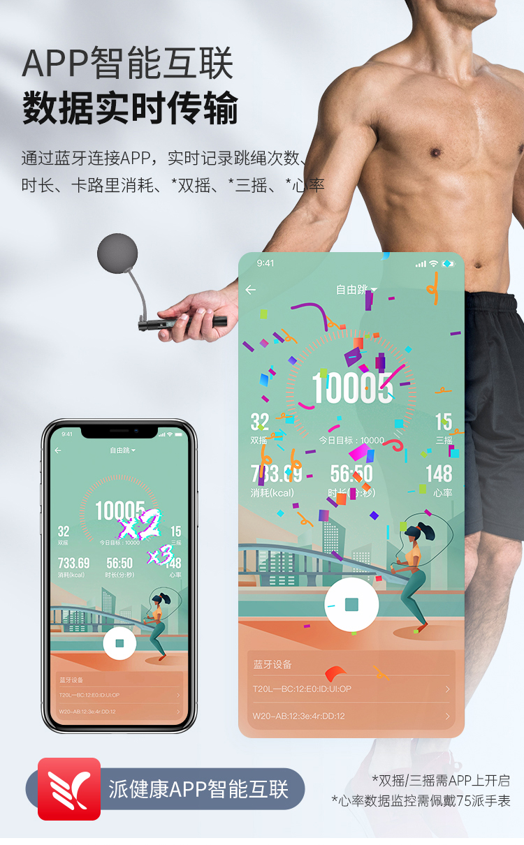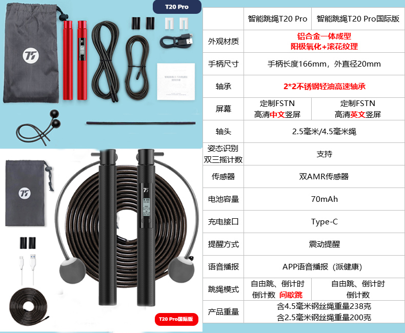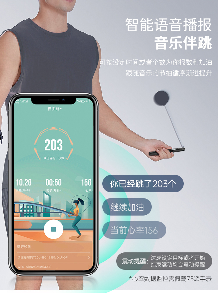 75派智能跳绳T20 Pro专有APP健身燃脂防滑耐磨蓝牙计数中考训练比赛竞速专用绳