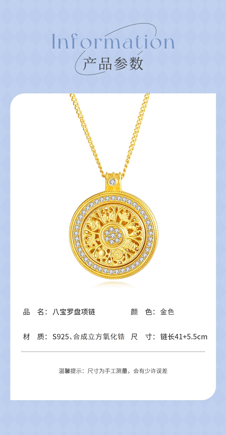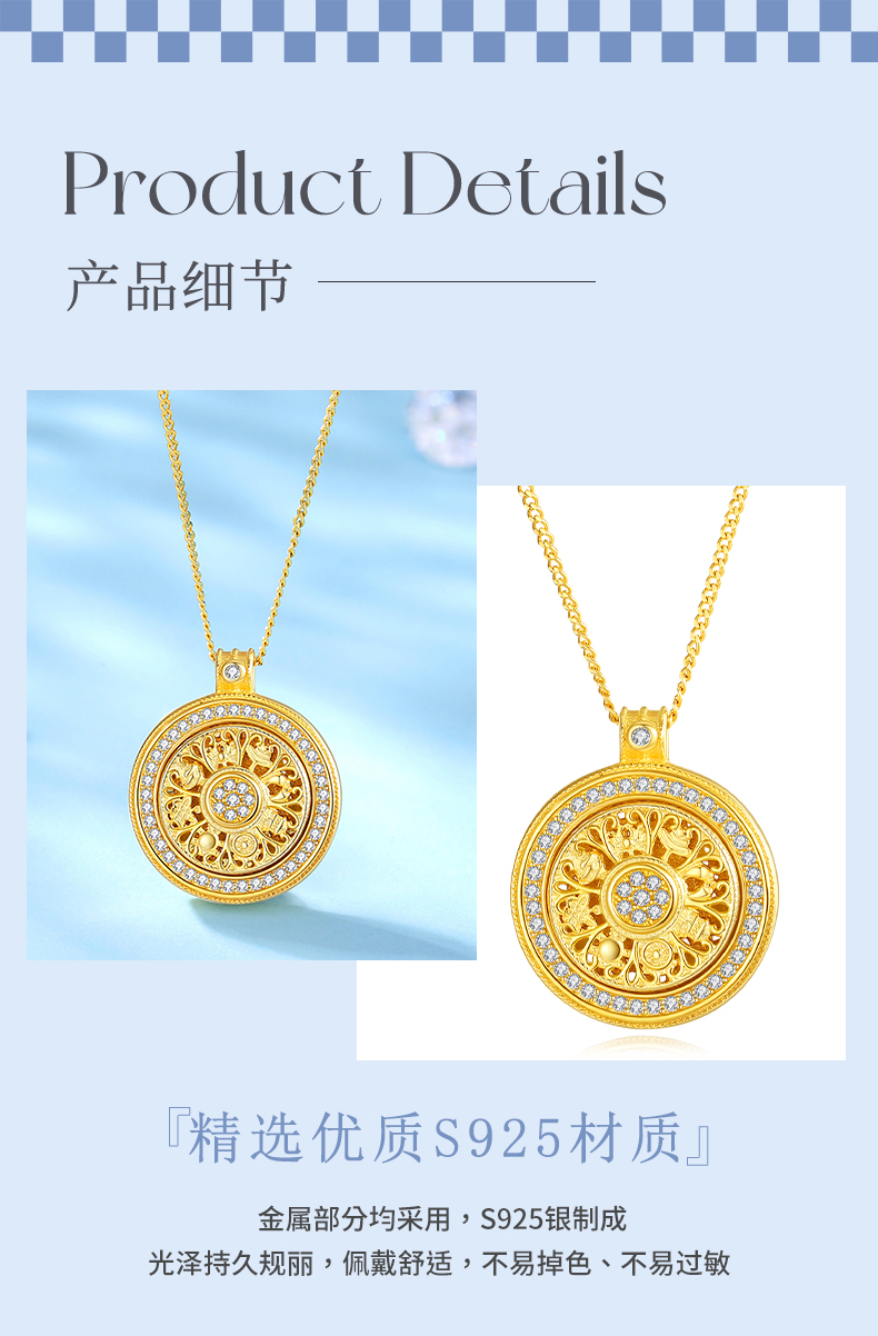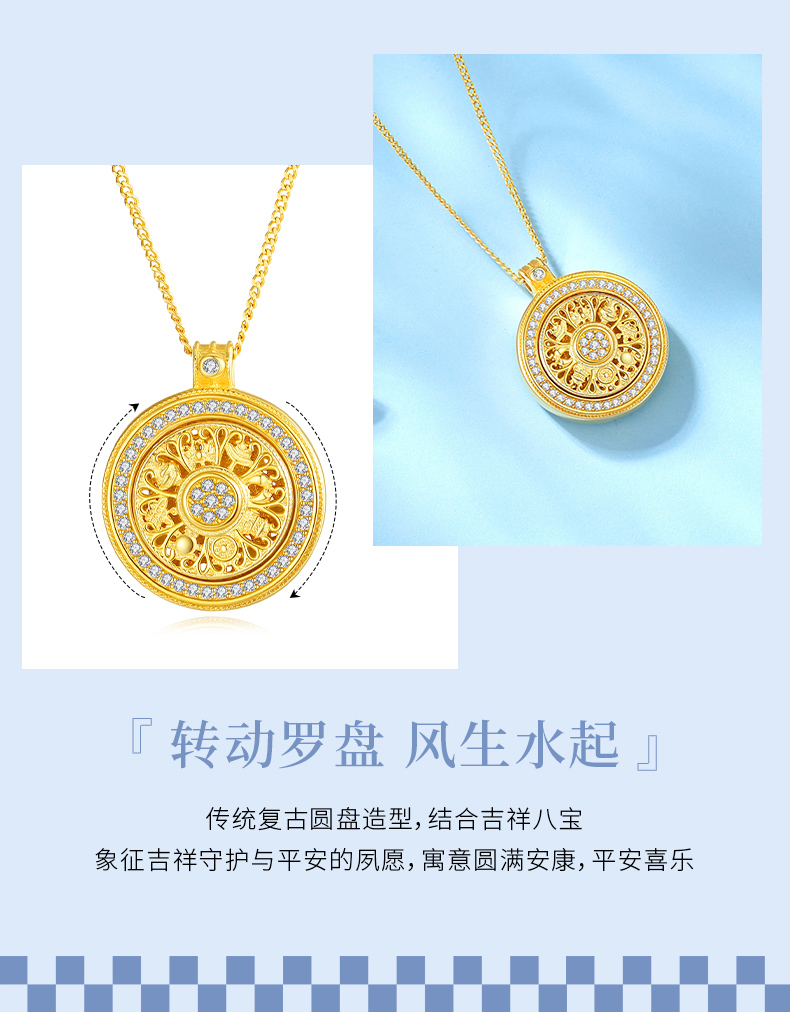 【可转动】卡蒂罗/KADER 八宝罗盘项链 古法花丝如意圆满吉祥八宝圆盘吊坠银链#好运 新中式本命年复古显白锁骨链