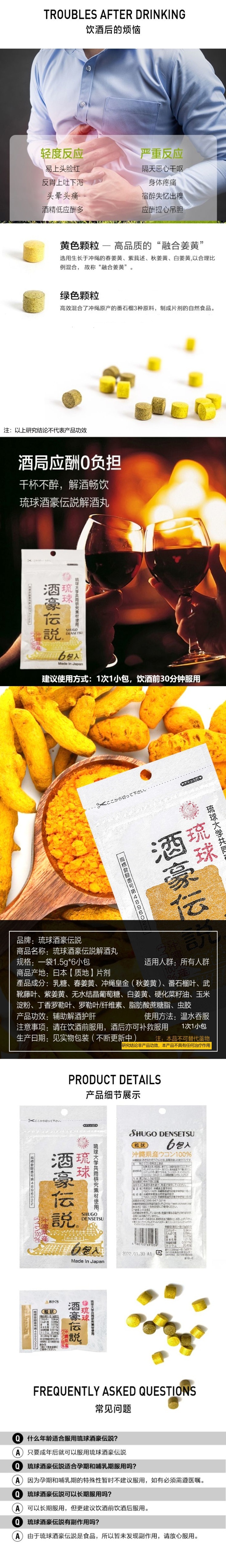 【保税仓】琉球酒豪传说解酒护肝片经典款6包/袋*3包(片装)